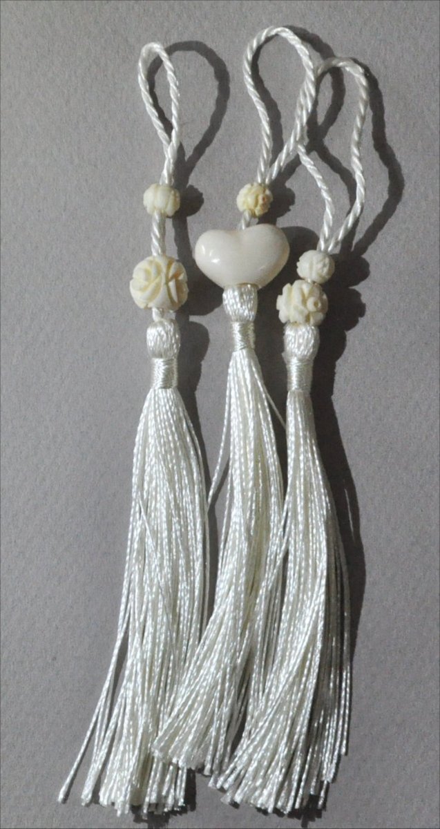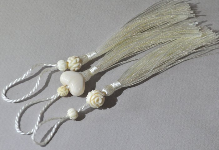 本シルクのハートが付いたタッセル3本組