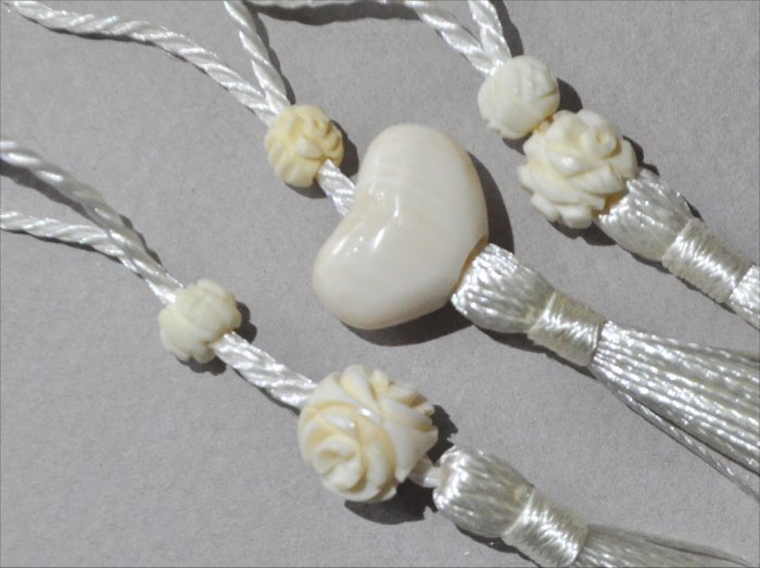 本シルクのハートボーン彫玉が付いた