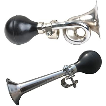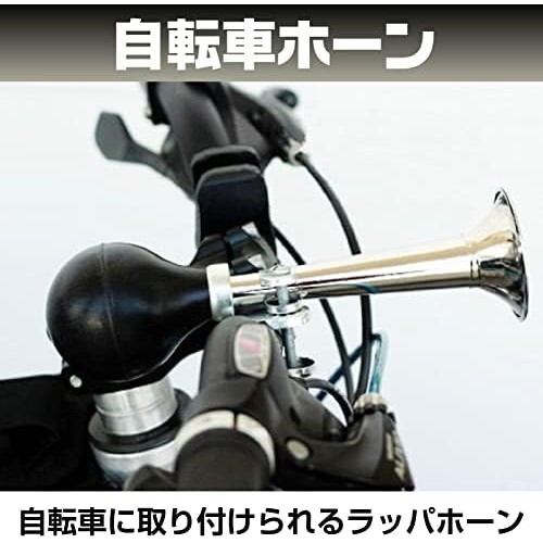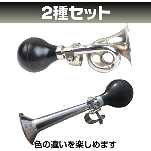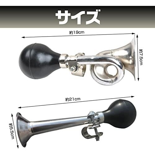 【商品内容】自転車のハンドルに取り付けられるラッパホーン(渦巻き型とストレート型)の2個セットです。