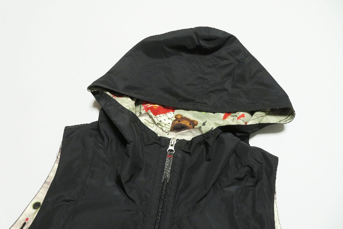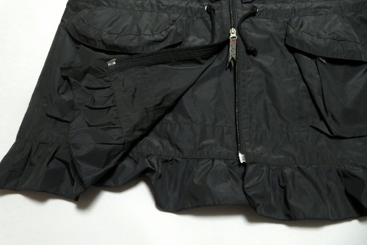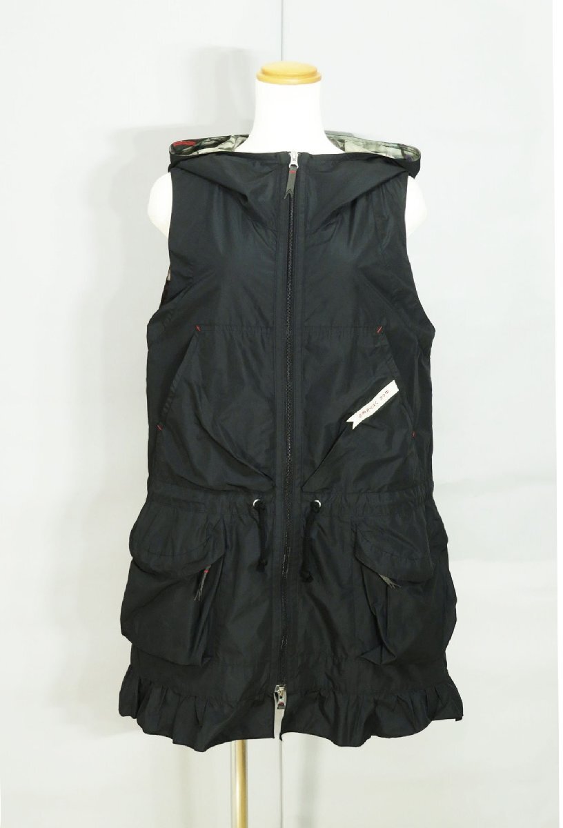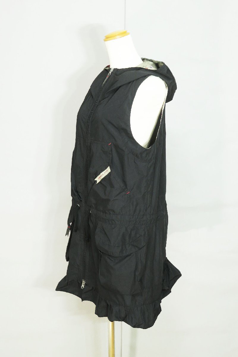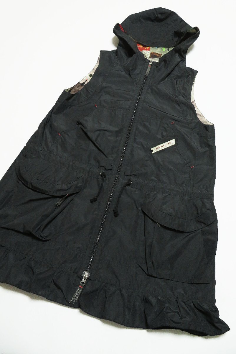 ☆美品☆アルベロベロ/洗える裾フリル 絞り紐付き ジップフーディロングベスト:黒nm150