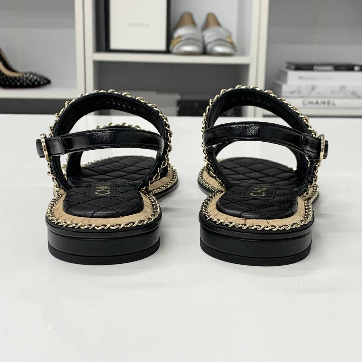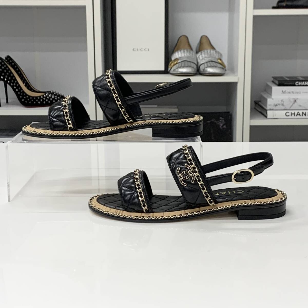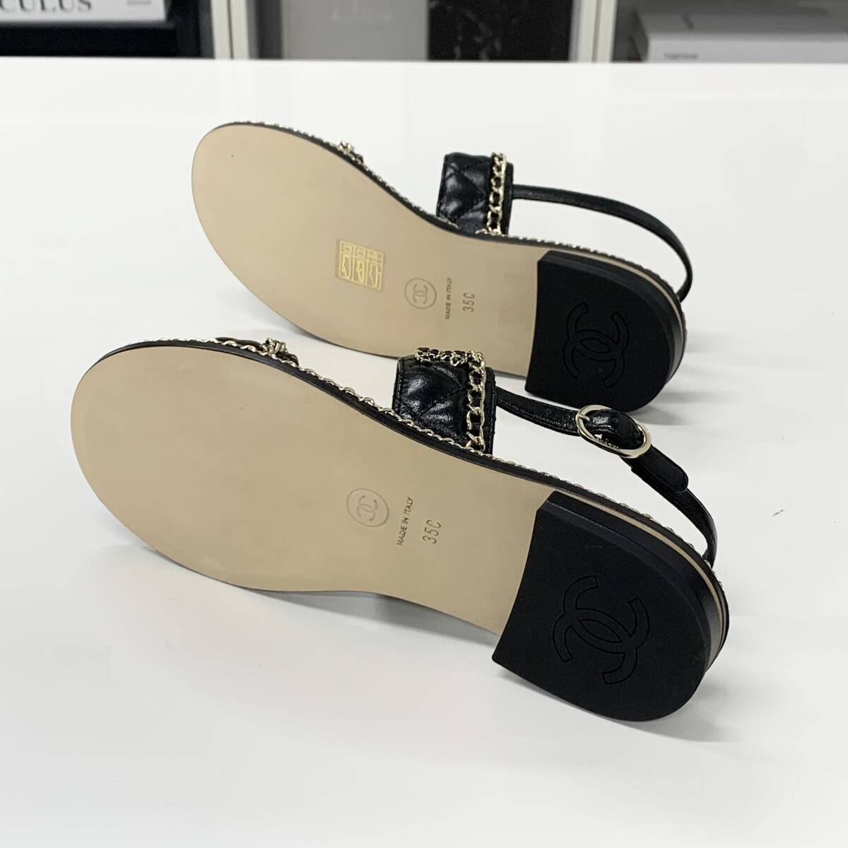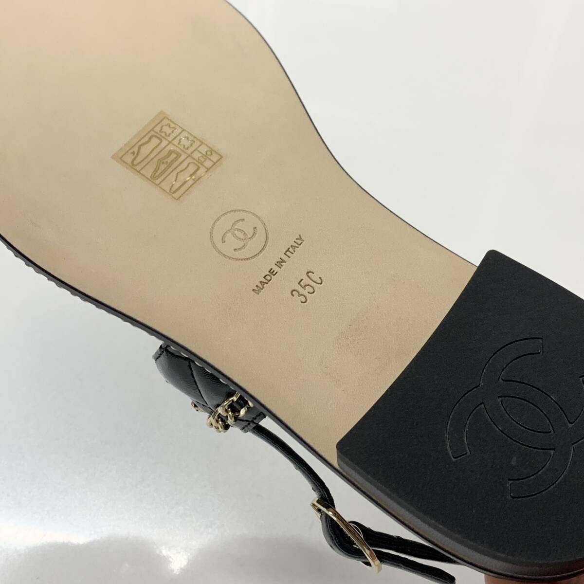 未使用 シャネル ココマーク マトラッセ チェーン レザー コルク サンダル ブラック