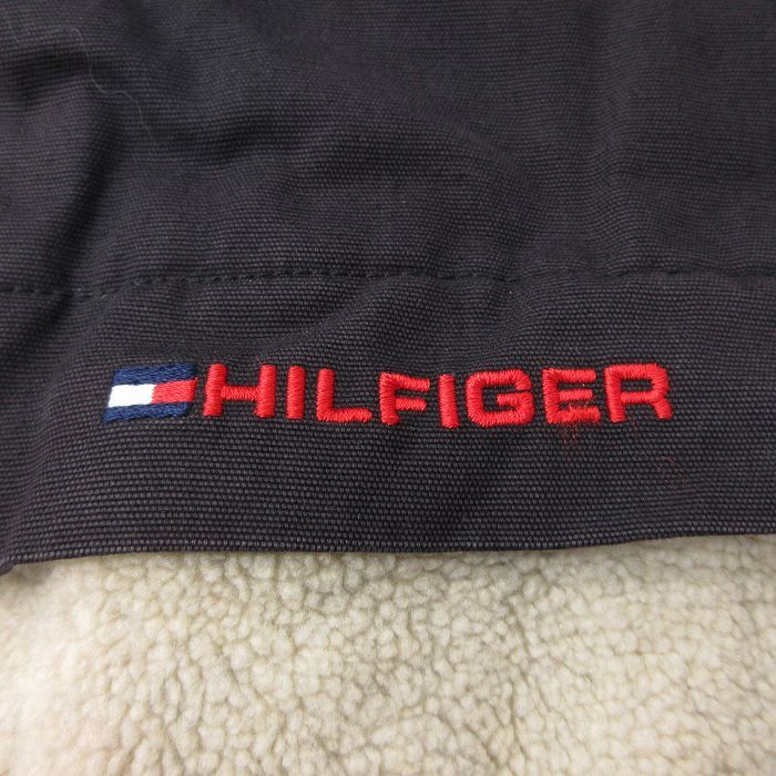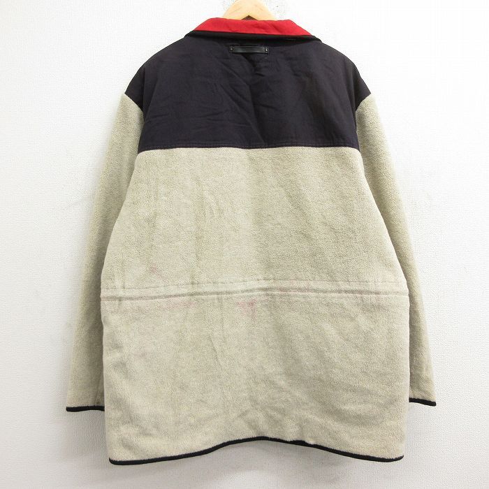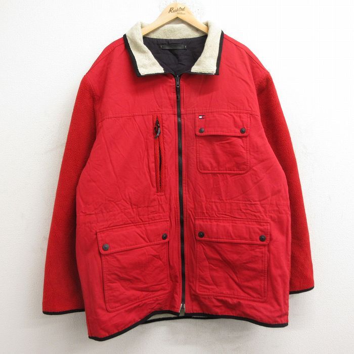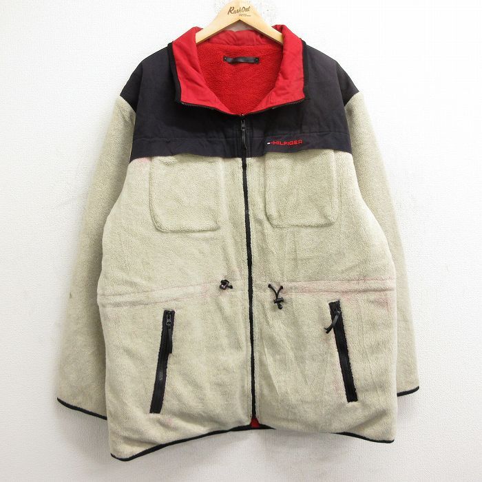 【商品名】 XL★古着 トミーヒルフィガー 長袖 ブランド フリース ジャケット メンズ ワンポイントロゴ リバーシブル ロング丈 ベージュ他【spe】