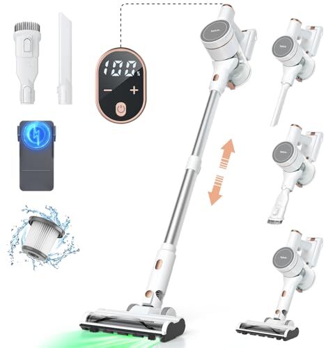 掃除機 コードレス 【2025革新版!業界初グリーンLEDライト&70Kpa真の強力吸引&軽量&自立式】コードレス掃除機 軽量 6