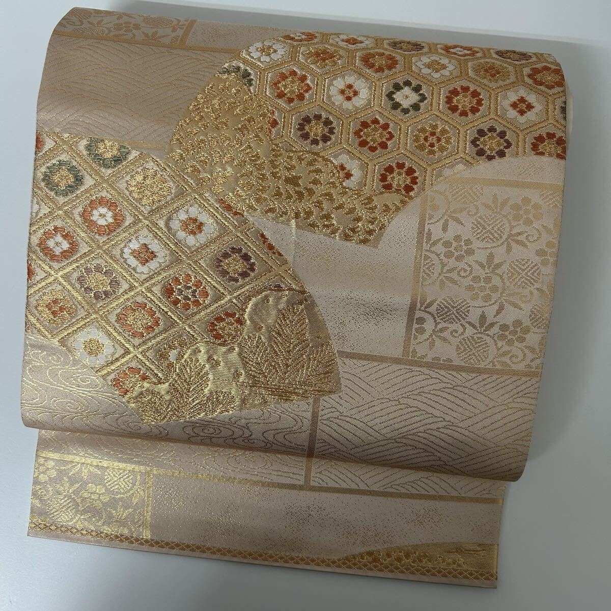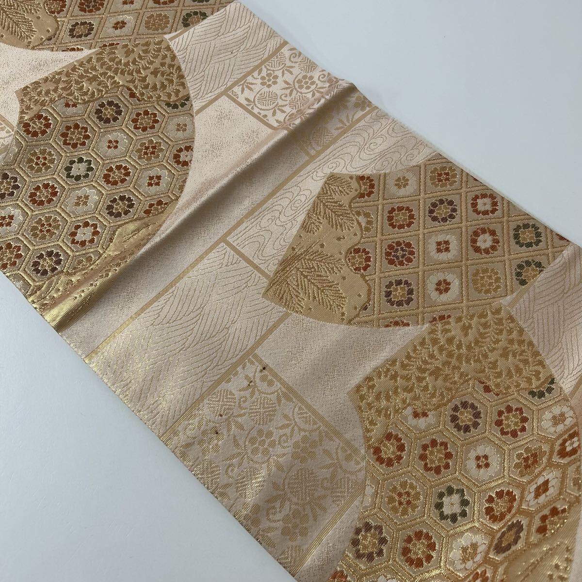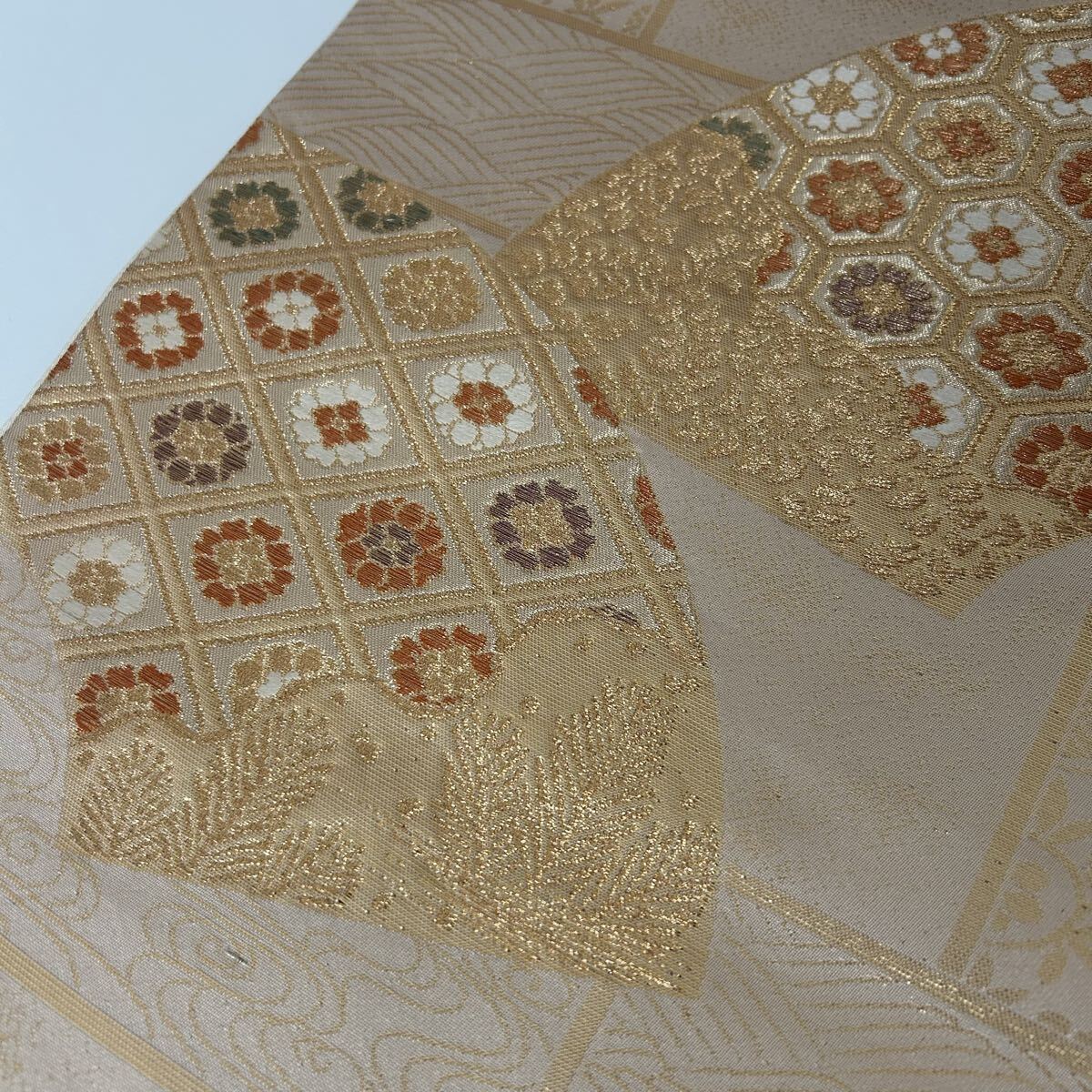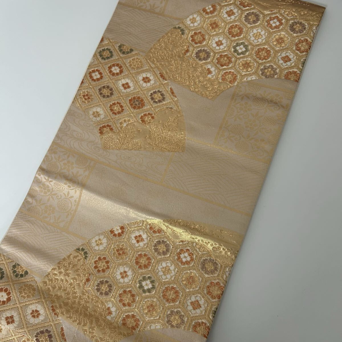 袋帯 正絹 金糸織り込み 亀甲繋ぎ 地紙 六通 KK-2679 【楓】