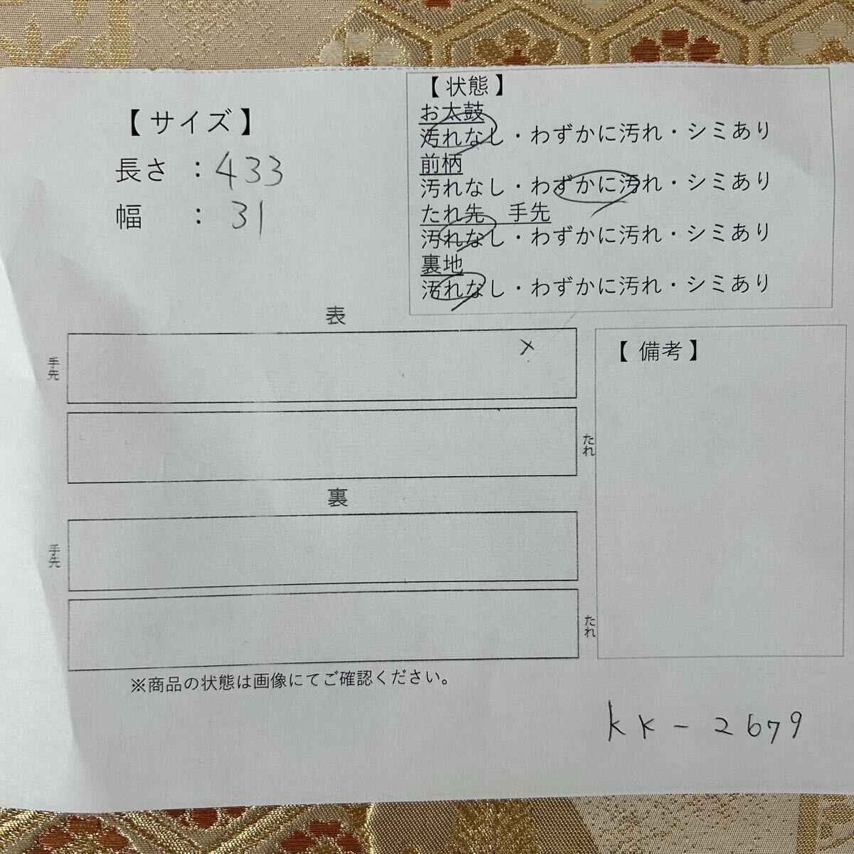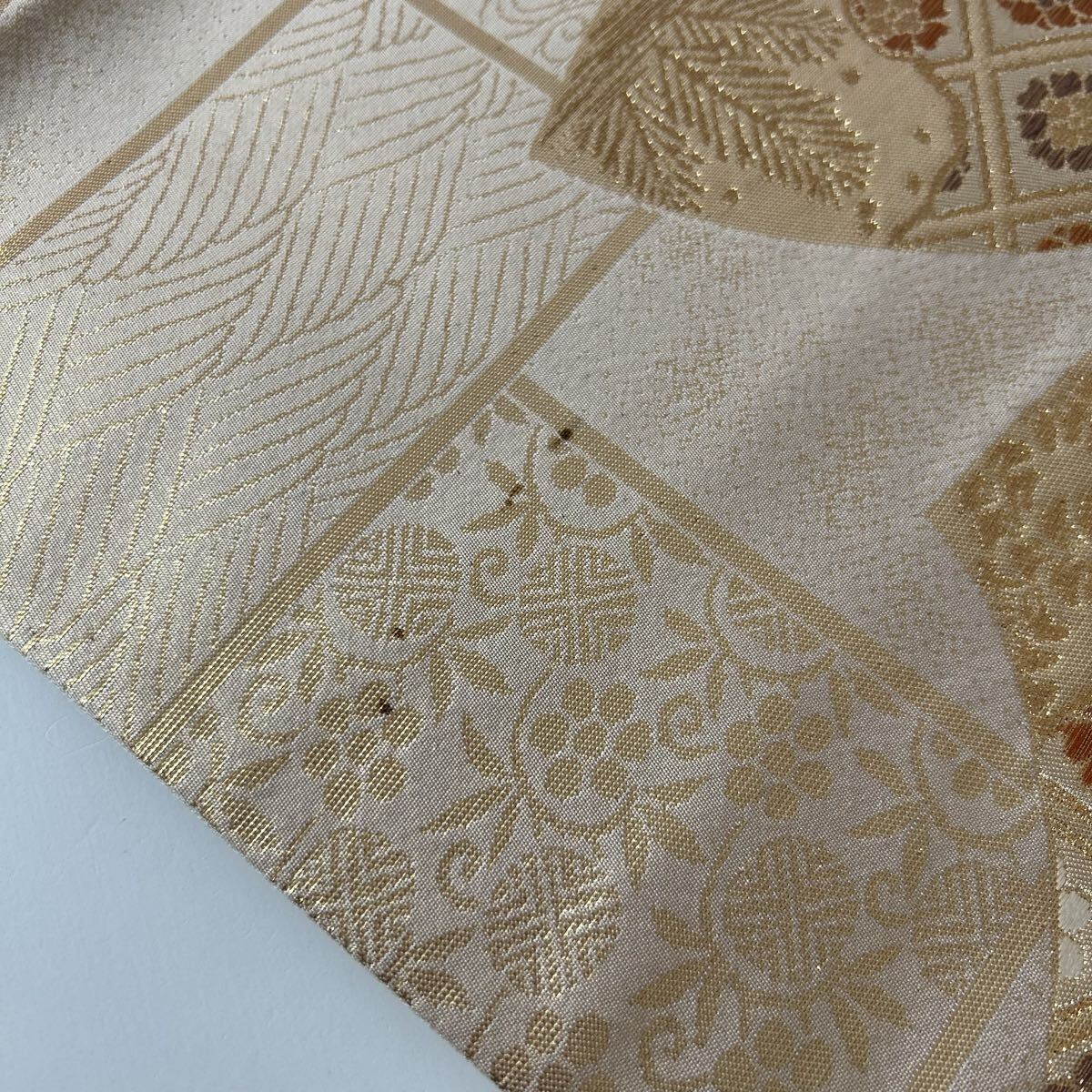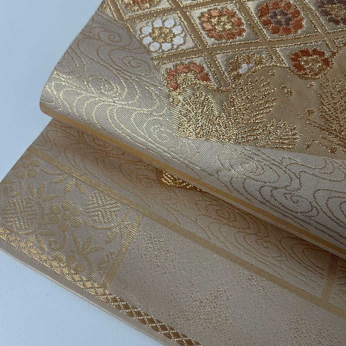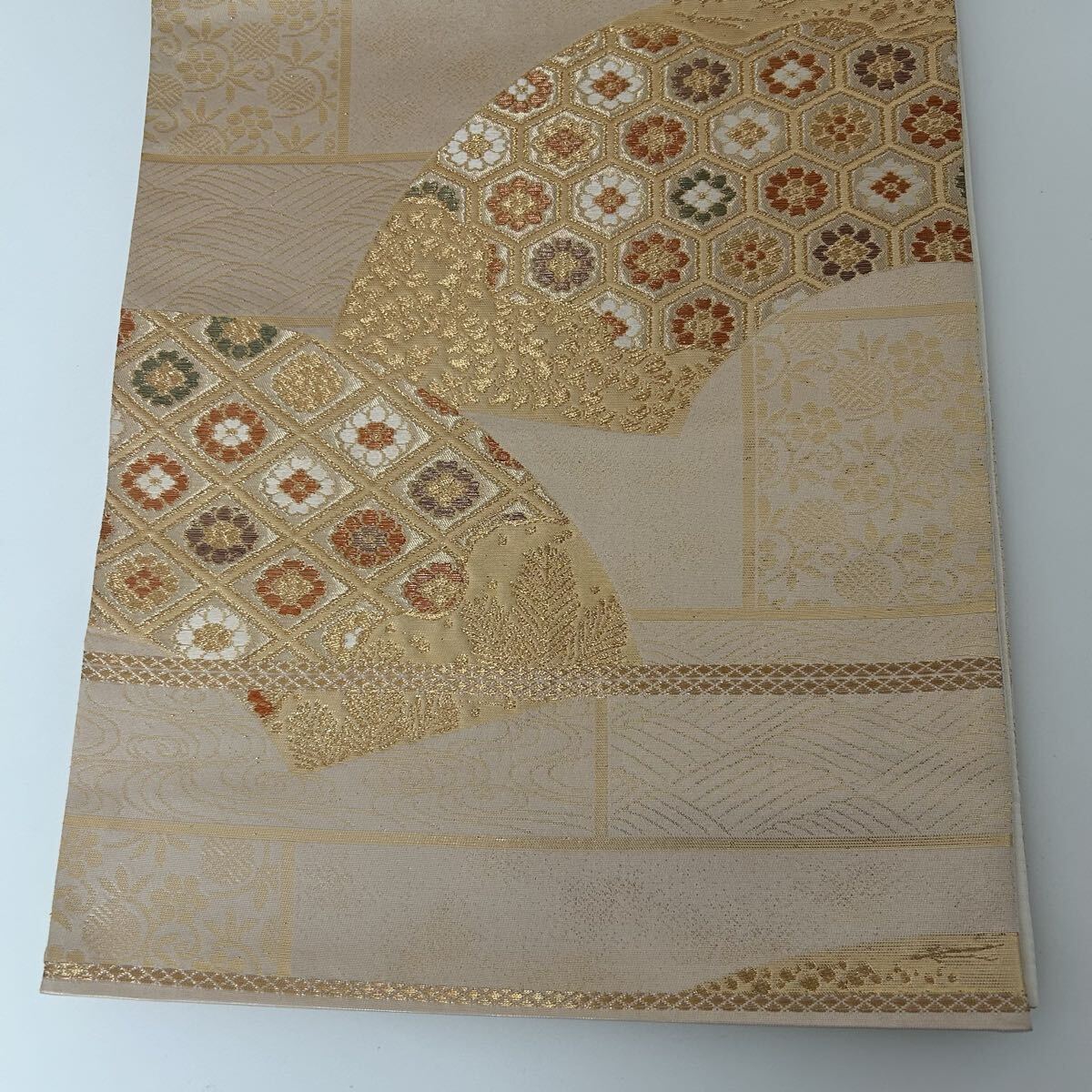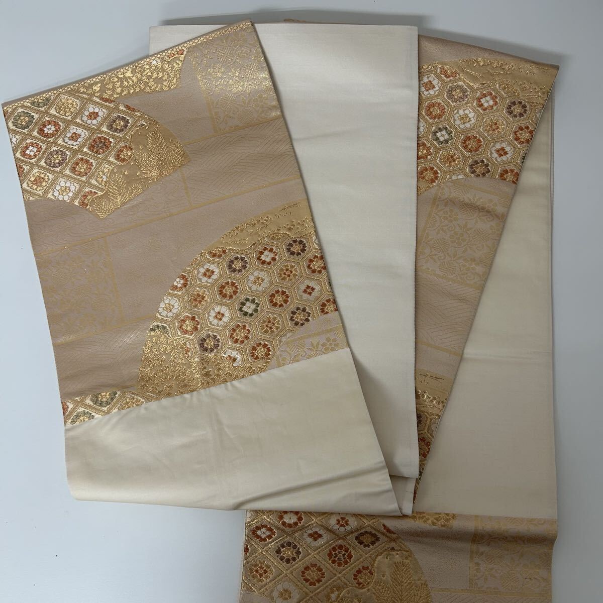 袋帯 正絹 金糸織り込み 亀甲繋ぎ 地紙 六通 KK-2679 【楓】