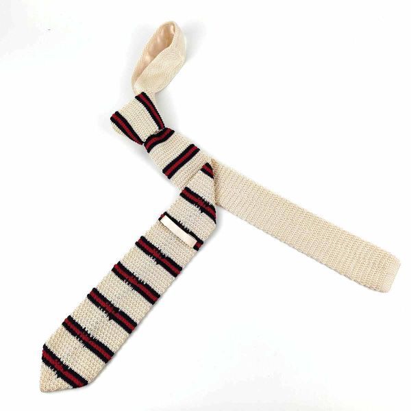 | ニットタイ ネクタイ 剣先タイプでボーダーです。人とは違ったタイプ。 自宅保管の未使用品です。 カラー:写真の通り サイズ:全長約148cm 最大幅:約6cm ※3枚目の写真は使用イメージです。カラーが異なります。 ※ネクタイ裏のリボン部分はロットによって色が異なる場合がございます。 パッケージはありません。 保管時や輸送費に折り皺等が付く場合がありますので、アイロン前提でご入札ください。 |