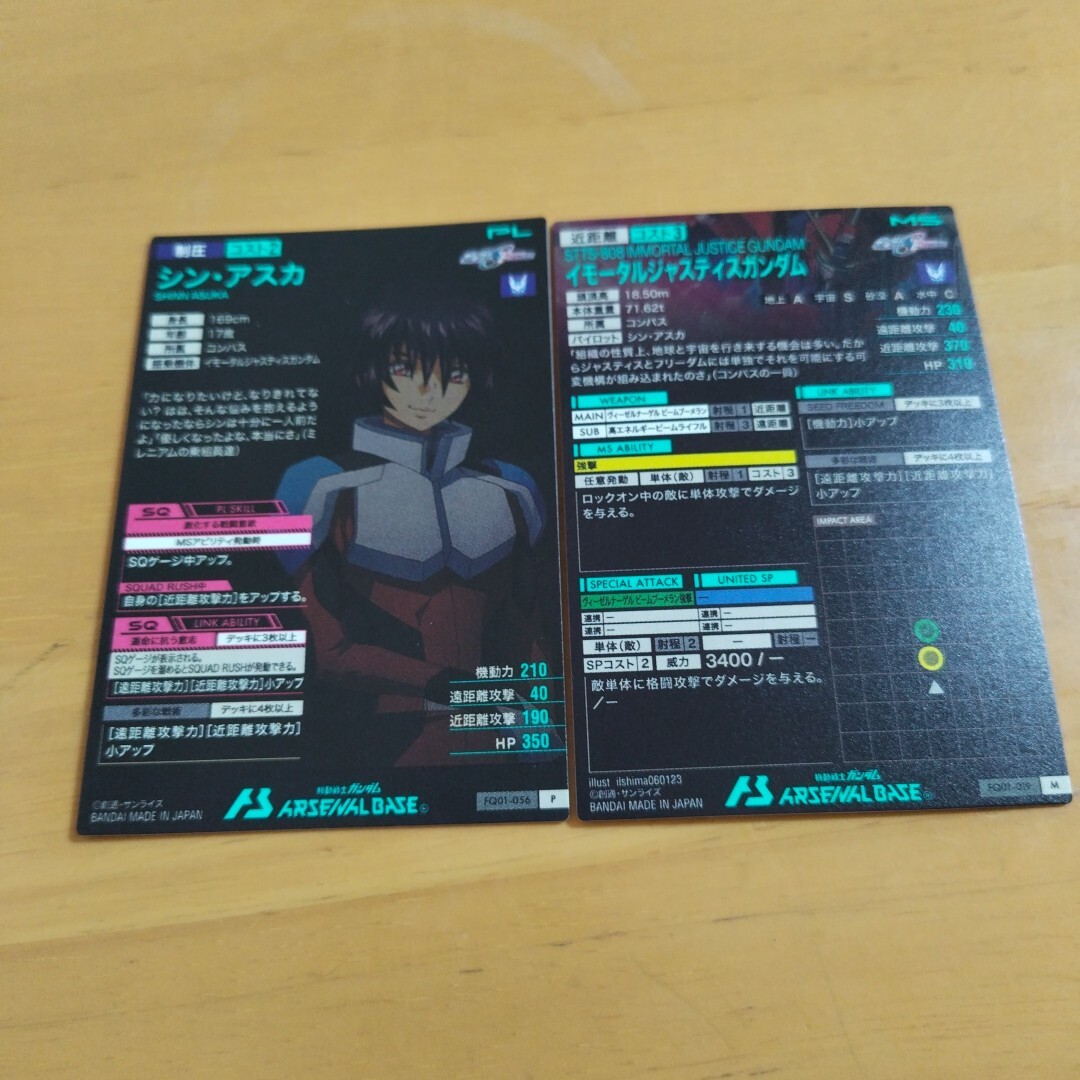 ガンダムアーセナルベース、Pレア、シン・アスカ&Mレア、イモータルジャスティスガンダムの出品となります。未使用品です。排出後、スリーブに入れて保管していますが初期キズなど気になさる方はご遠慮ください。配送料金は梱包代込みで全国一律、120円とさせていただきます。他の出品との同梱は対応いたします。ノークレム、ノーリターンにてお願いいたします。