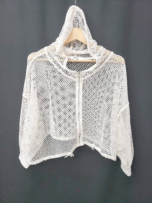 ◇ ⊂ INGNI イング メッシュ ショート丈 長袖 パーカー サイズM ホワイト レディース E