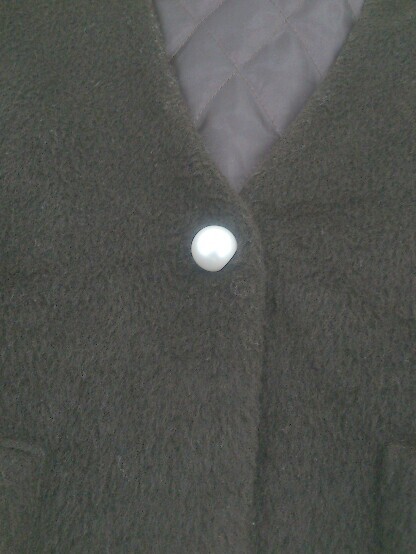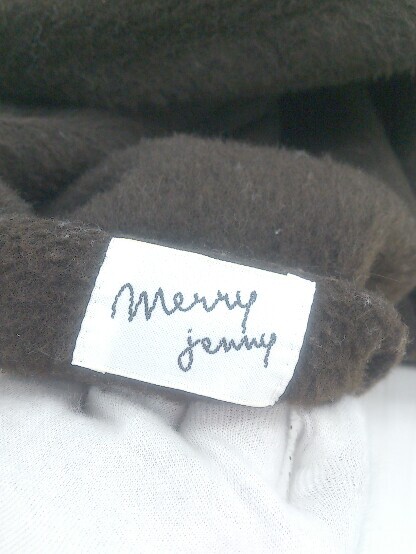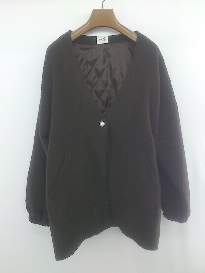 ◇ merry jenny メリージェニー パール 通勤 通学 長袖 ノーカラー コート サイズF ブラウン レディース P