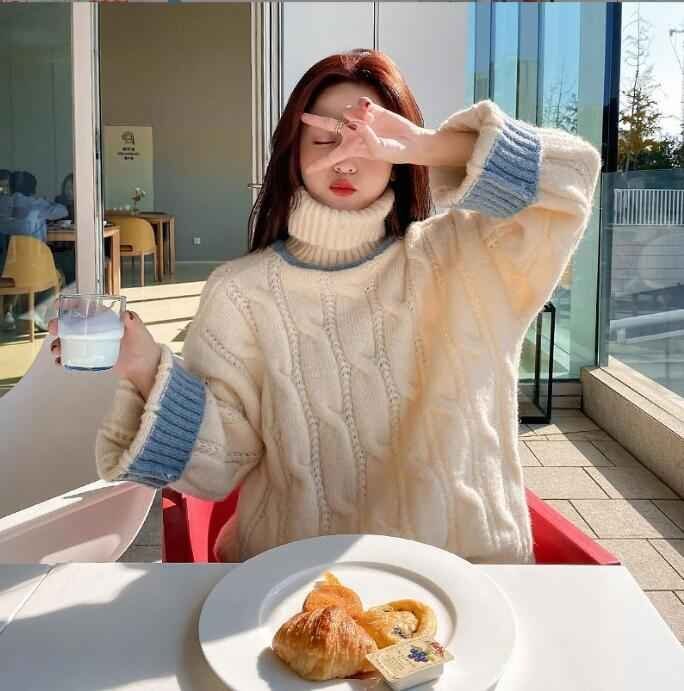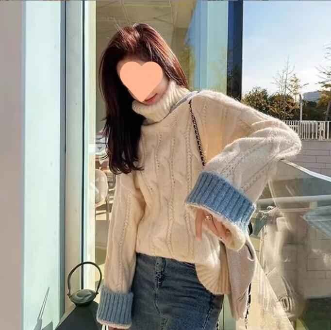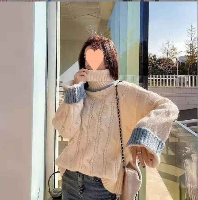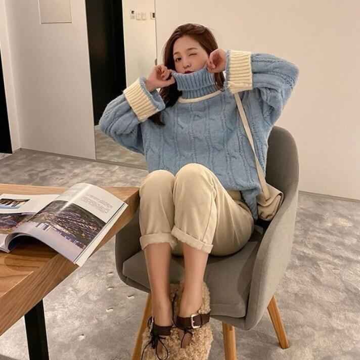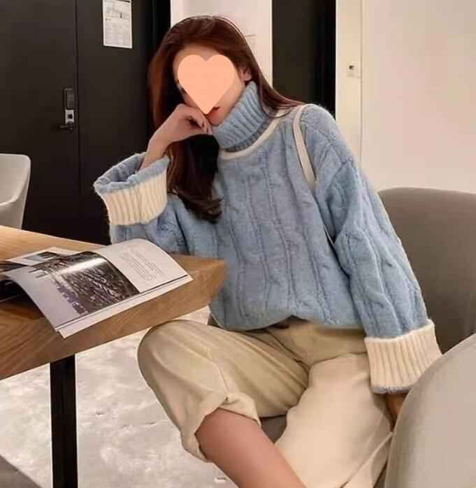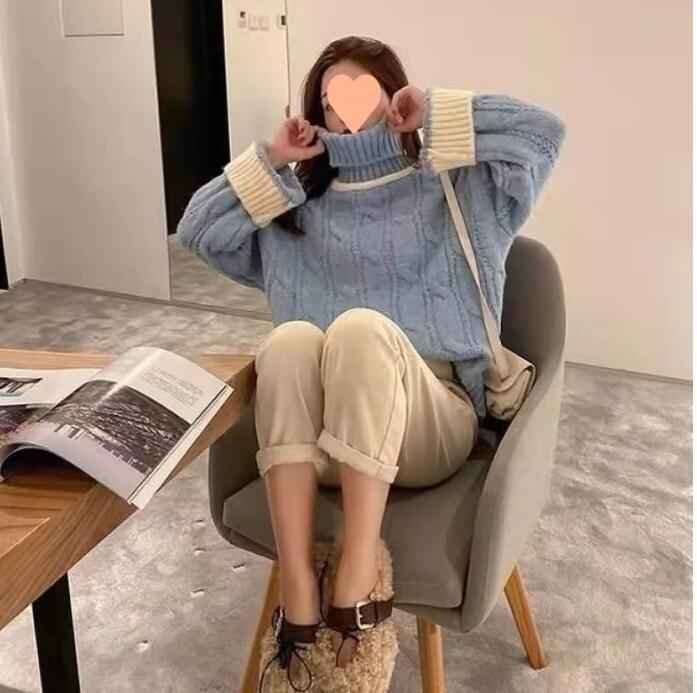 S-2XL 長袖セーター ファッション ニットトップ 秋冬 セーター S ブルー
