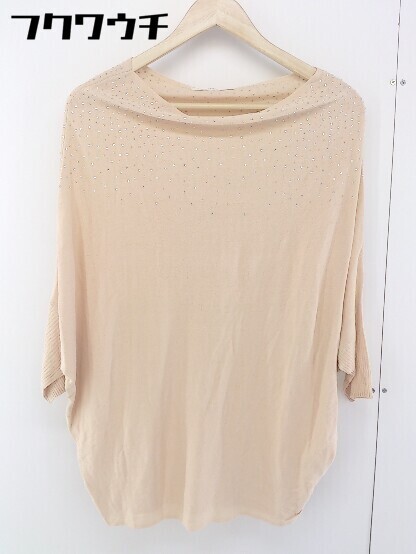 ◇ STRAWBERRY FIELDS ラインストーン 七分袖 ニット セーター ベージュ マルチ レディース