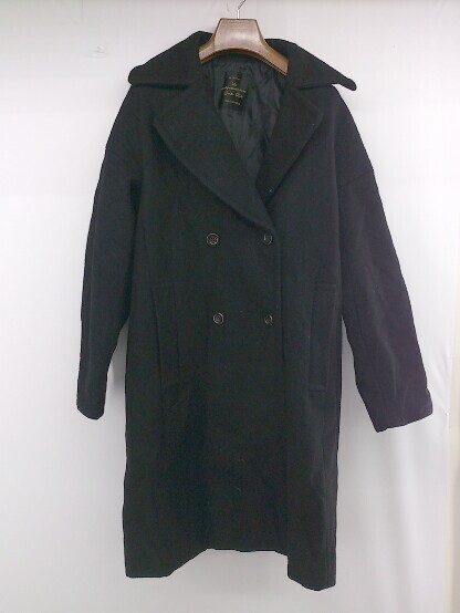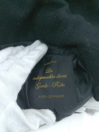 ◇ nano universe ナノユニバース シンプル ダブルボタン 長袖 ロング コート サイズ38 ブラック レディース P