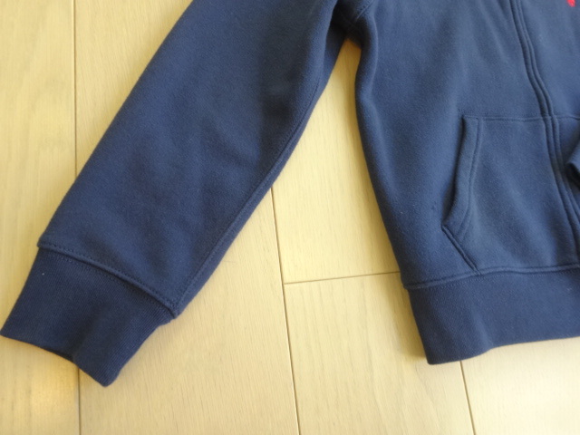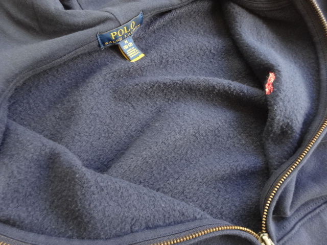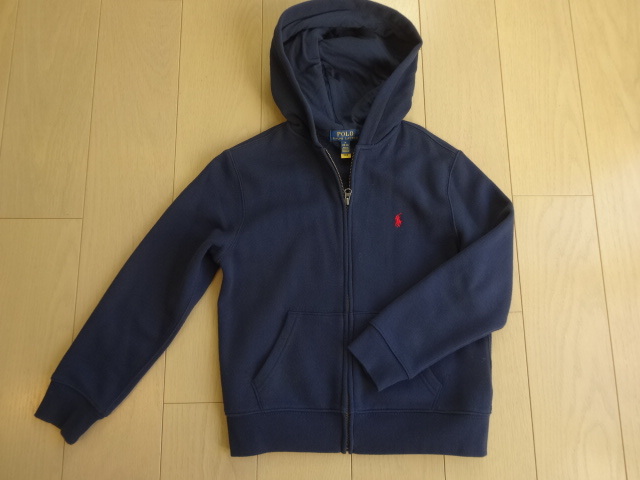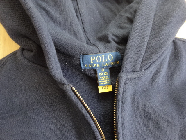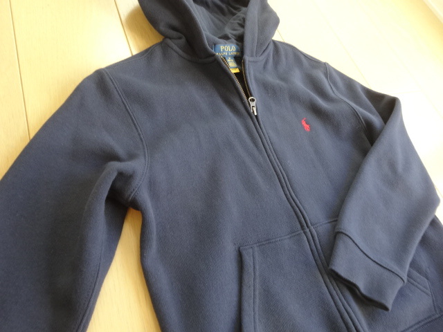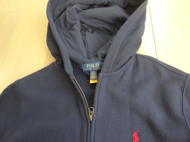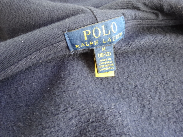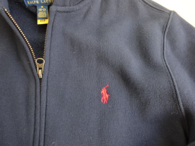 極美品☆ラルフローレン キッズ ネイビー 裏起毛ジップアップパーカー 赤ポニー刺繍 男女兼用 サイズM 10~12
