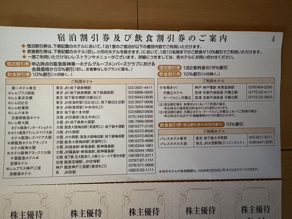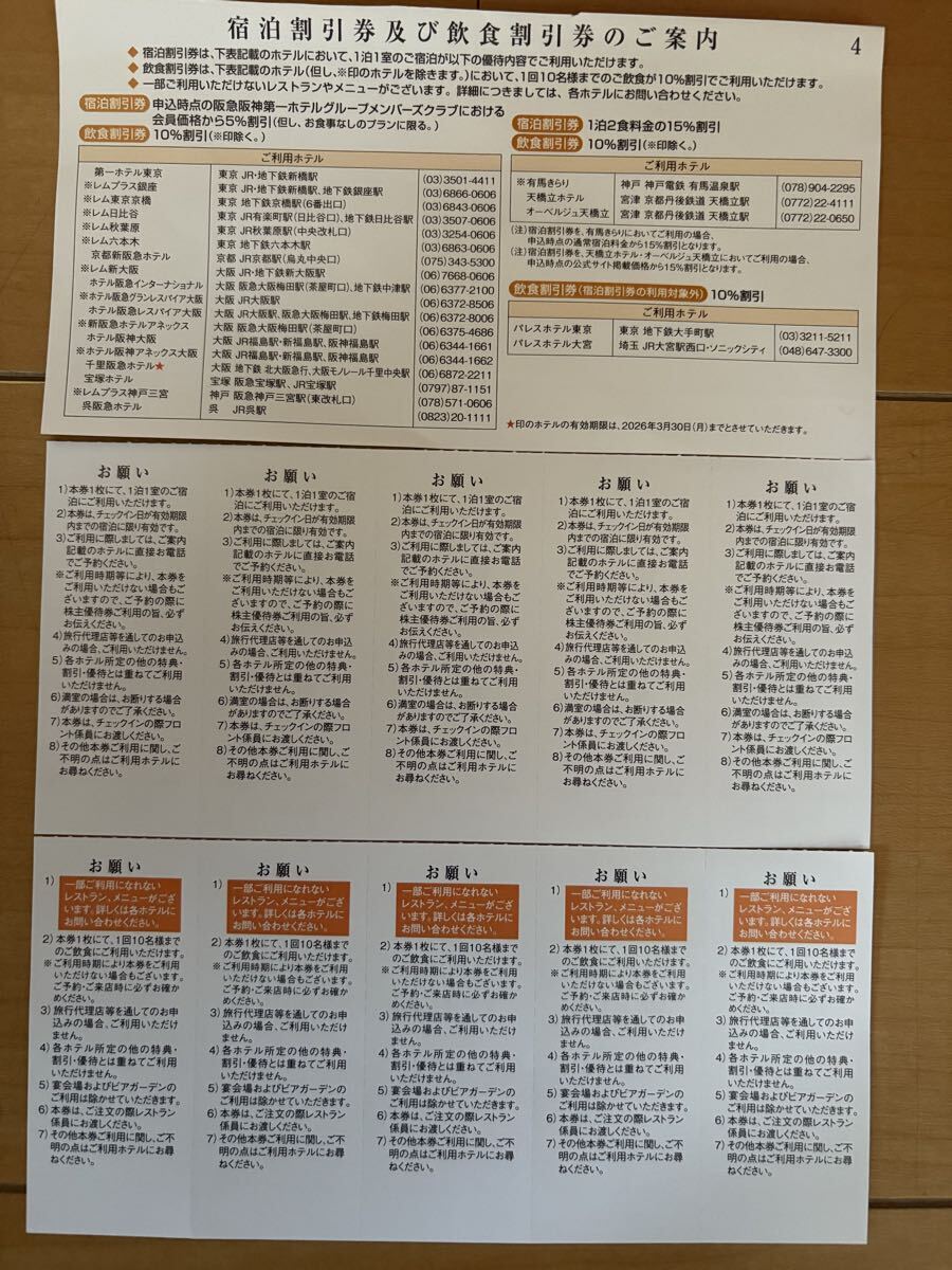 阪急阪神ホールディングス株主優待◆宿泊割引券・飲食割引券