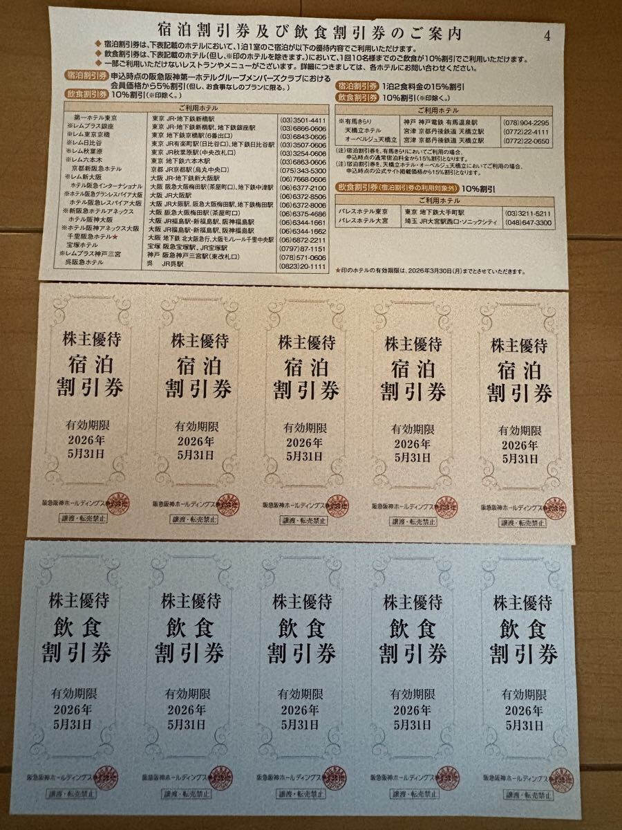 100円即決! 迅速発送◆阪急阪神ホールディングス株主優待◆宿泊割引券・飲食割引券 10枚セット 2026年5月31日迄◆送料85円~,