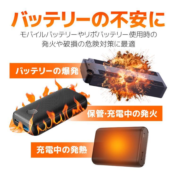 モバイルバッテリーやリポ電池使用時の発火や破損の危険対策に役立ちます。