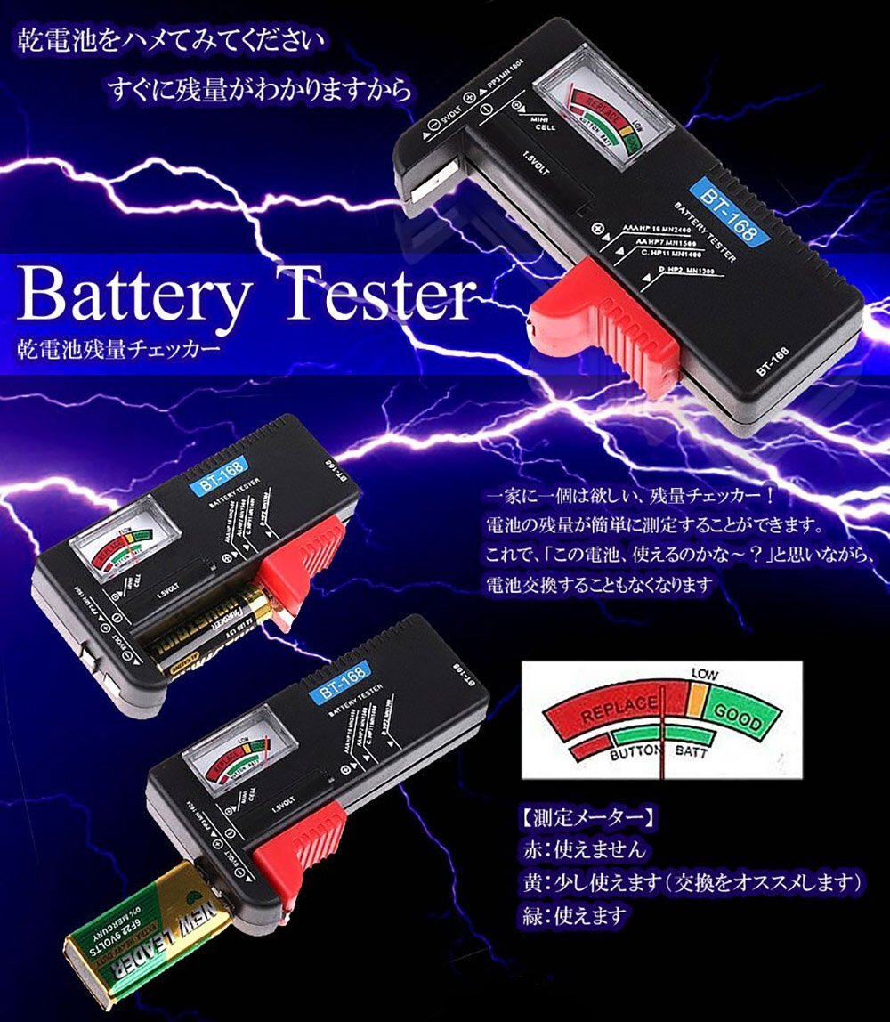 乾電池チェッカーです。1台あると便利!ご家庭に1台、職場に一台、いかがですか?