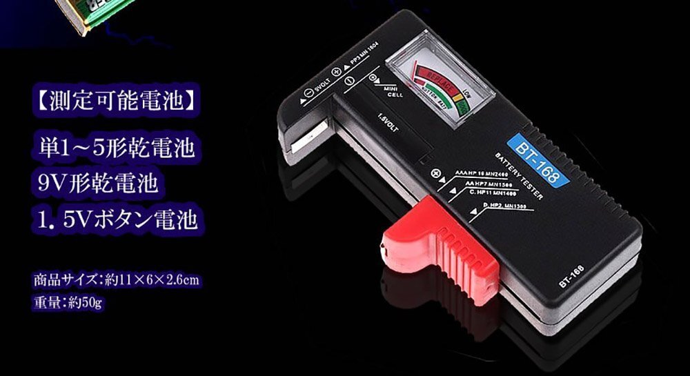 ・乾電池はもちろん、ボタン電池、9Vの電池残量も測れます!