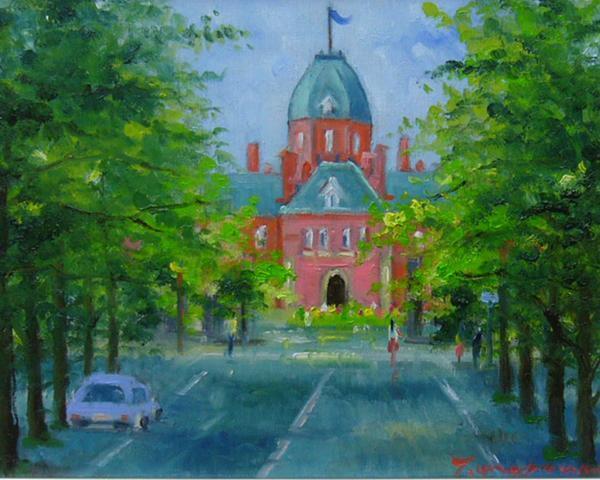| 作品説明 | 緑の木々に包まれた北海道 県庁,国指定重要文化財,日本の建築、風格 品格が有り素敵に描かれていますね。 |