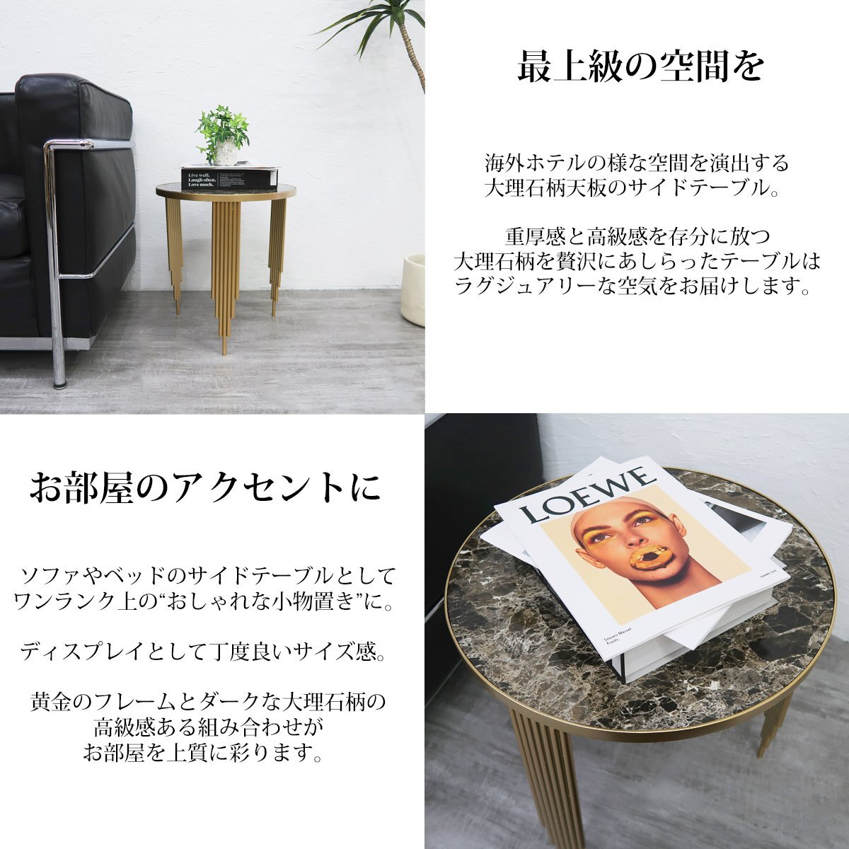 ![]() ※画像一枚目の商品になります。 最上級の空間を。 海外ホテルの様な空間を演出する大理石柄天板のサイドテーブル。 重厚感と高級感を存分に放ち、大理石柄を贅沢にあしらったテーブルはラグジュアリーな空間作りに最適です。 天板表面は綺麗に加工されており耐久性があります。 撥水性、キズに強く、拭き取り簡単でお手入れラクラク 。 黄金のフレームとエンペラドールダーク柄を思わせる大理石柄天板の組み合わせが 他にはない特別な空間を彩ります。 ソファ横、ベッドサイド、リビング等に置いてワンランク上のおしゃれな小物置きに。 高級感あふれるデザインが視覚的な楽しみも与えてくれるオブジェとしても楽しめます。 商品仕様 サイズ(約):天板直径40cm、高さ43cm 重量(約):2.9kg 材質:フレーム:鉄 天板:天然木化粧繊維板(ウォルナット) |