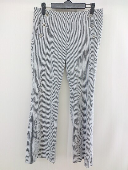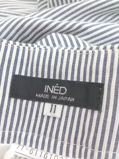 ◇ INED イネド ストライプ ワイド パンツ サイズ11 ホワイト グレー レディース