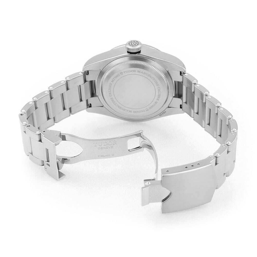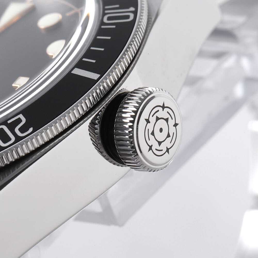 | モデル情報 | 人気モデルヘリテージ・ブラックベイの2016年発表モデルが入荷いたしました。ドーム型ガラスを備えた200m防水ケースに、COSC認定自社製キャリバーMT5602を搭載。パワーリザーブはRef.79220の38時間から70時間へと大幅アップ。ブレスサイドのリベットによって味わい深いタイムピースに仕上がりました。 |