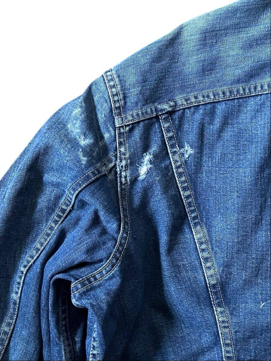 着用感、サンフェード、汚れ、ほつれ、破け各所にある状態です。