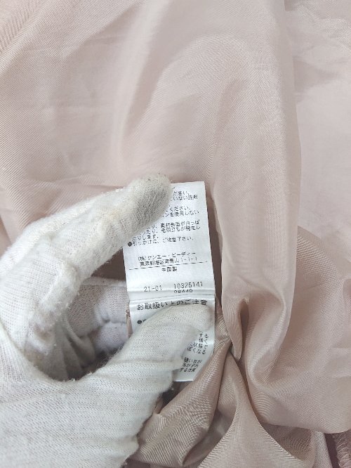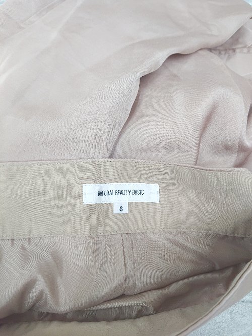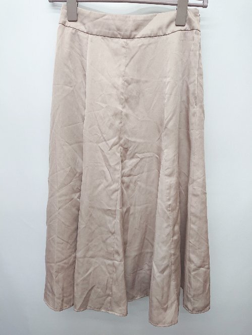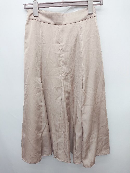 ◇ NATURAL BEAUTY BASIC ナチュラル サテン調 膝下丈 フレア スカート サイズS ベージュ レディース P