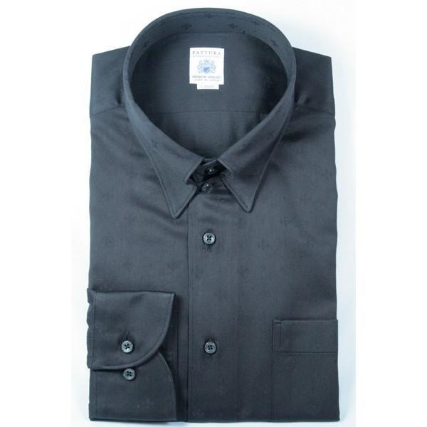 FATTURAブランド タブカラードレスシャツ ブラック クレスト柄 日本製