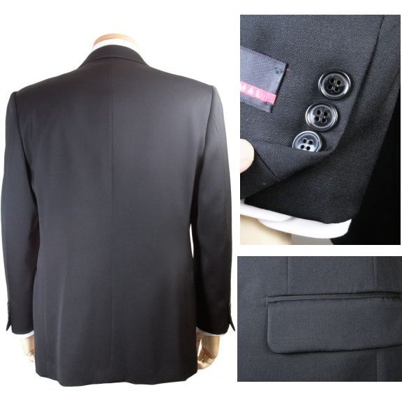 ■仕様:ラペル毛芯仕様、ノーベント、背裏背抜きパイピング仕上げ、胸箱ポケット、左右腰ポケット(フラップ付両玉縁)、袖口開き見せ額縁仕上げ、ピンポイントステッチ、台場、左右内ポケット、携帯ポケット、タバコポケット、ワンタックアジャスター付