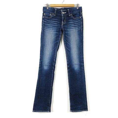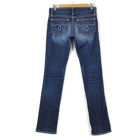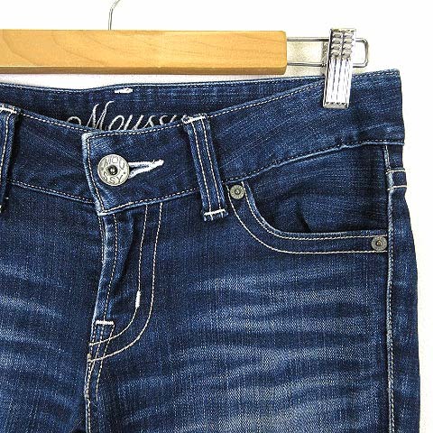 マウジー MOUSSY デニムパンツ ジーンズ スリム ラメ ステッチ ウォッシュ加工 ストレッチ 26 インディゴブルー シルバー レディース