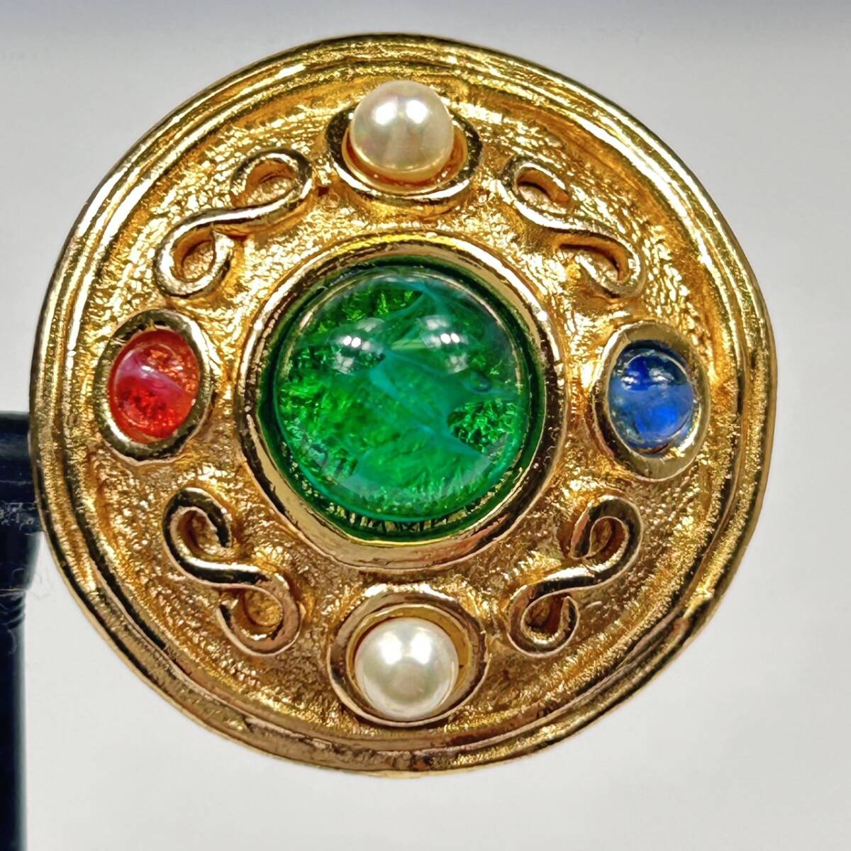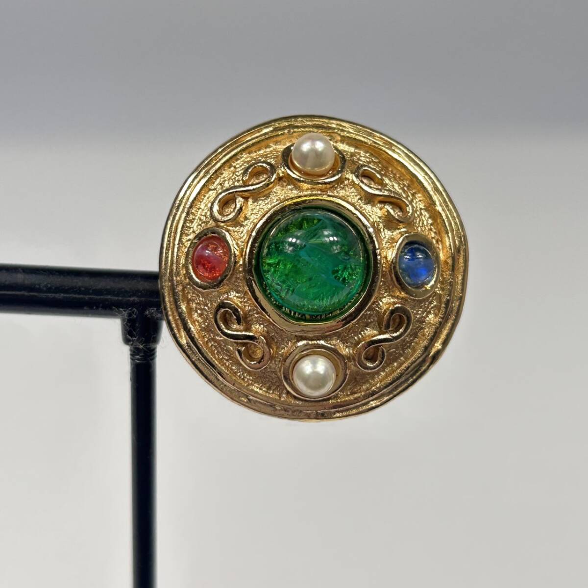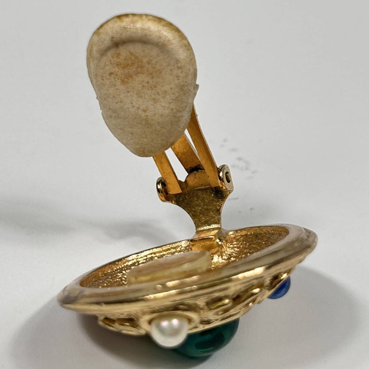 | H7433 Dior ディオール カラーストーン イヤリング 赤 青 白 緑 GP ゴールドカラー 片方のみ アクセサリー ジュエリー | ||