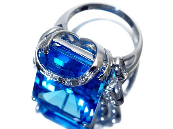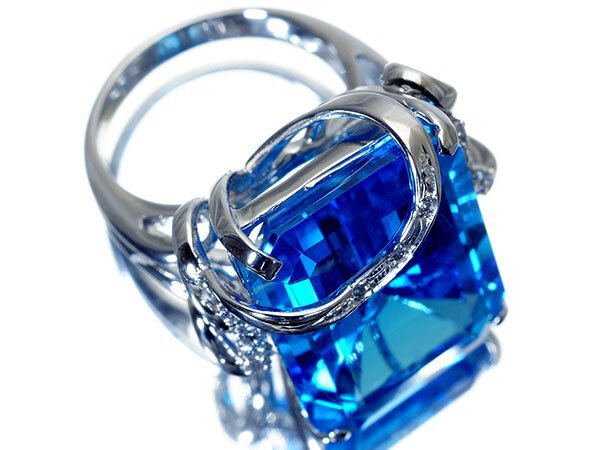 1円~【ジュエリー極】極上スイスブルー煌く!超大粒極上天然ブルートパーズ35.0ct&ダイヤ0.20ct 超高級K18WGリング k1150iul【送料無料】
