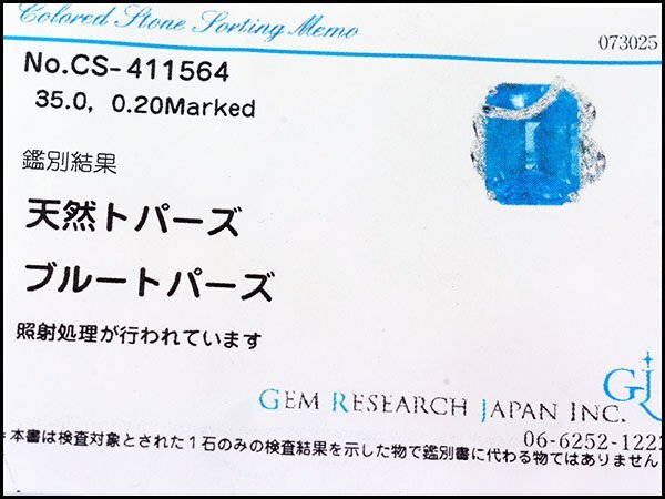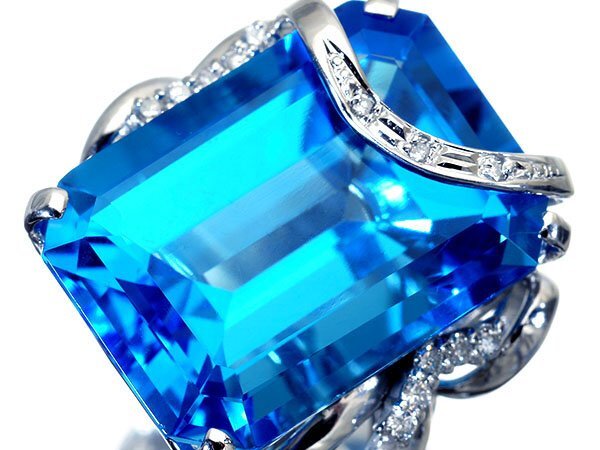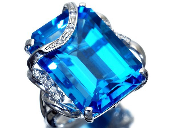 極上の色調放つ超希少な超大粒極上天然ブルートパーズ35.0ct&ダイヤモンド総計0.20ctを素敵に宝飾した、高級K18ホワイトゴールドリングを1円から特別大放出致します!