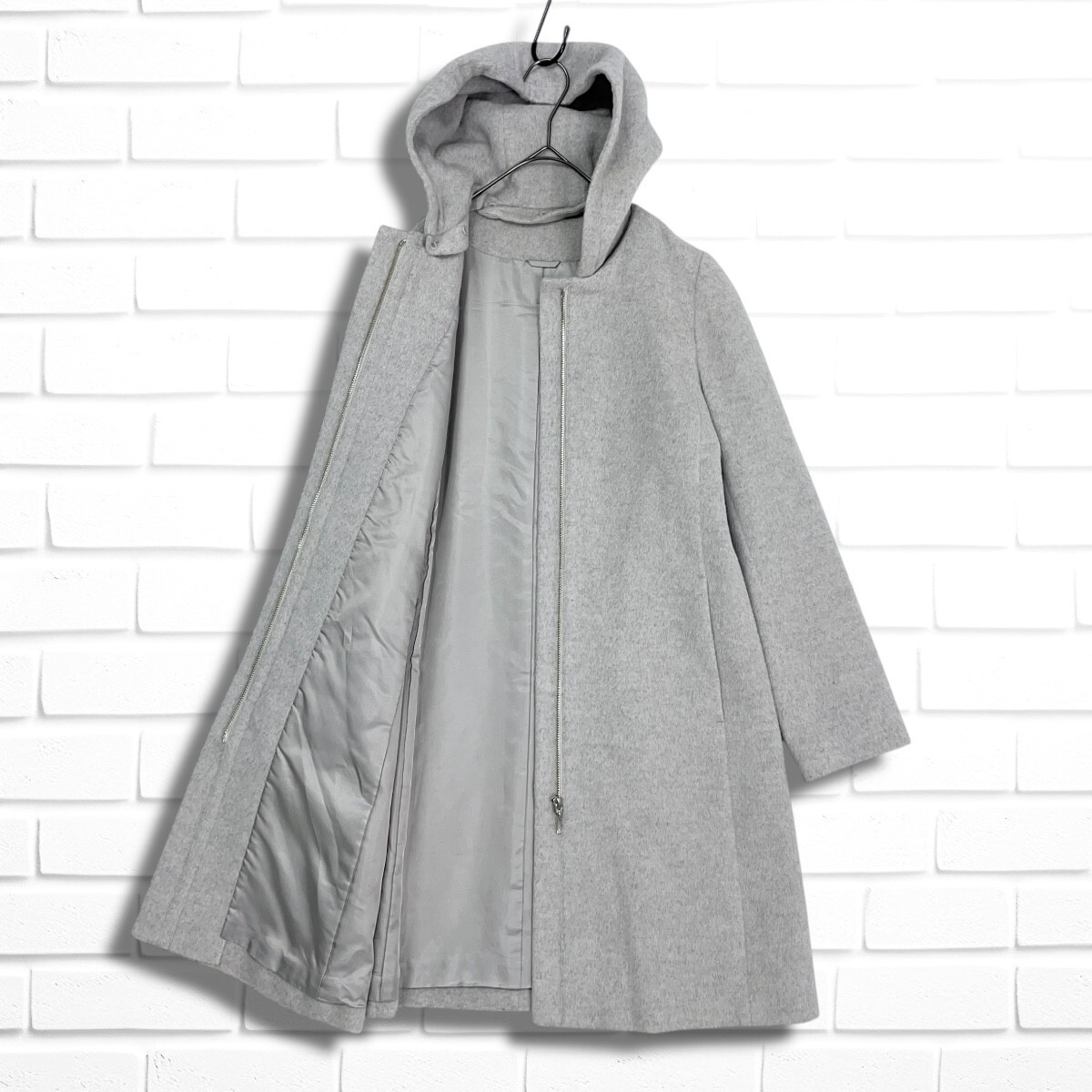 ◆良品◆ ANAYI アナイ アンゴラ ウール フーディー コート ライトグレー レディース ◆日本製 送料無料◆ 0155L◇