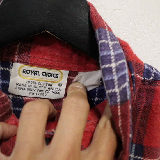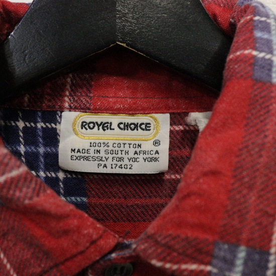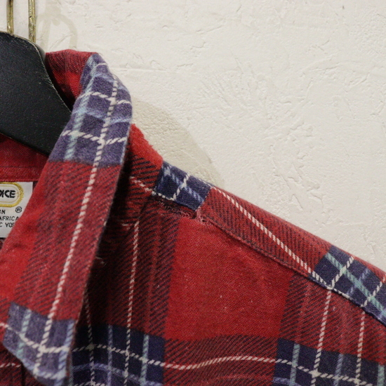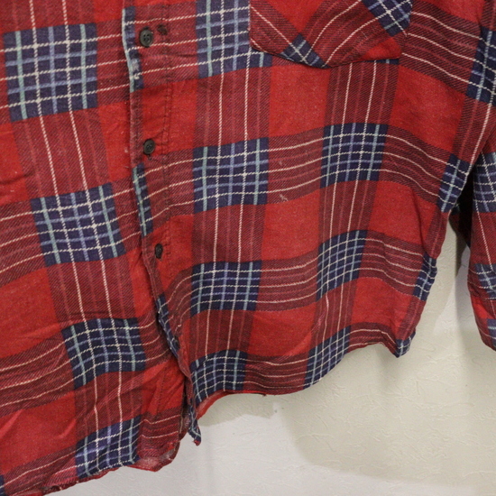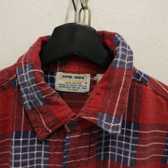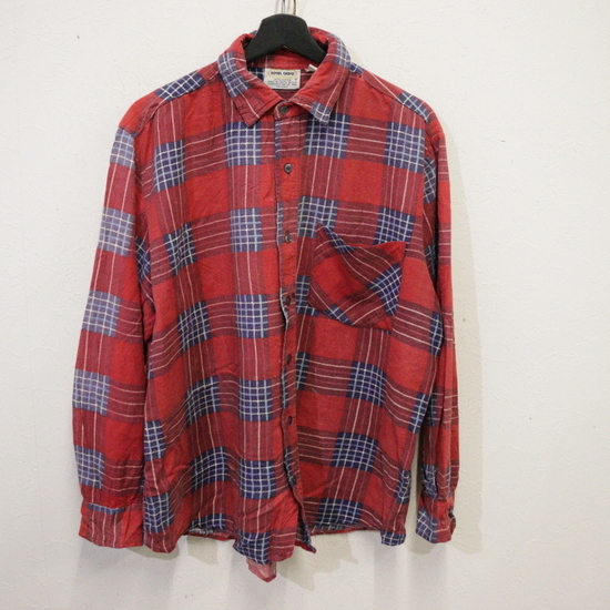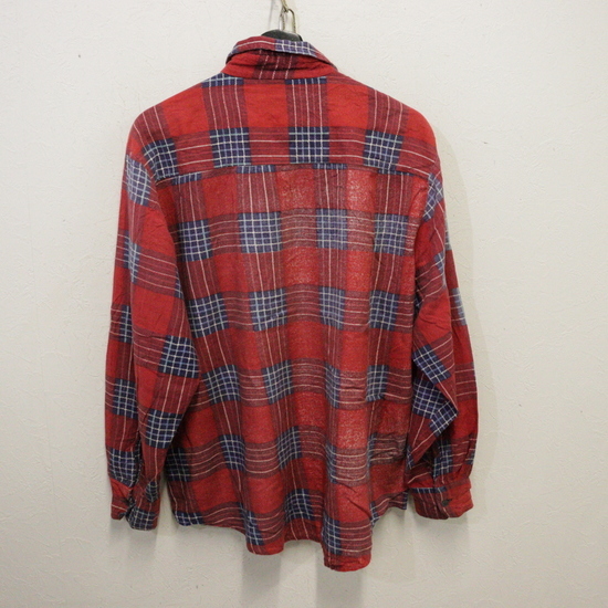 商品名 h915 80sビンテージ 長袖シャツ ROYELCHOICE■1980年代製 約XLサイズ レッド プリントネル チェック 古着 アメカジ ストリート 90s 70s 60s