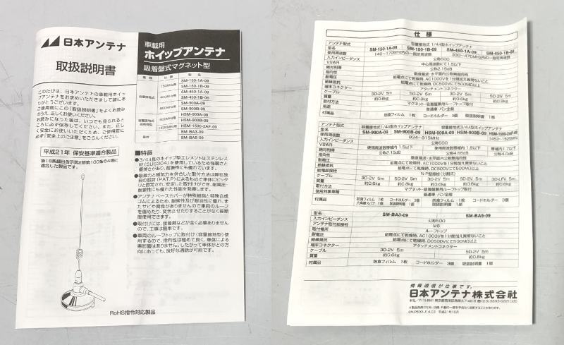 ☆【未使用品】車載用 ホイップアンテナ 日本アンテナ SM-450-1A-09 吸着盤式マグネット型 平成21年保安基準適合品(NF251204)Zi-2348