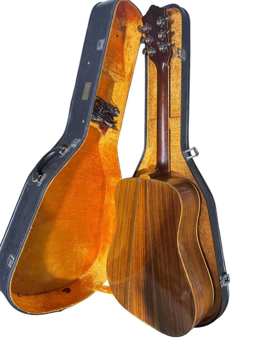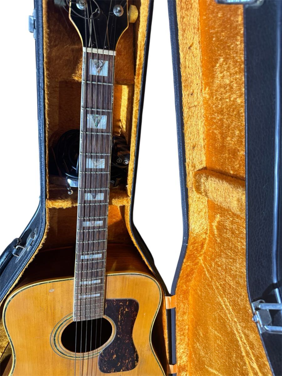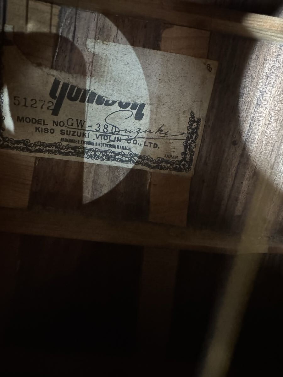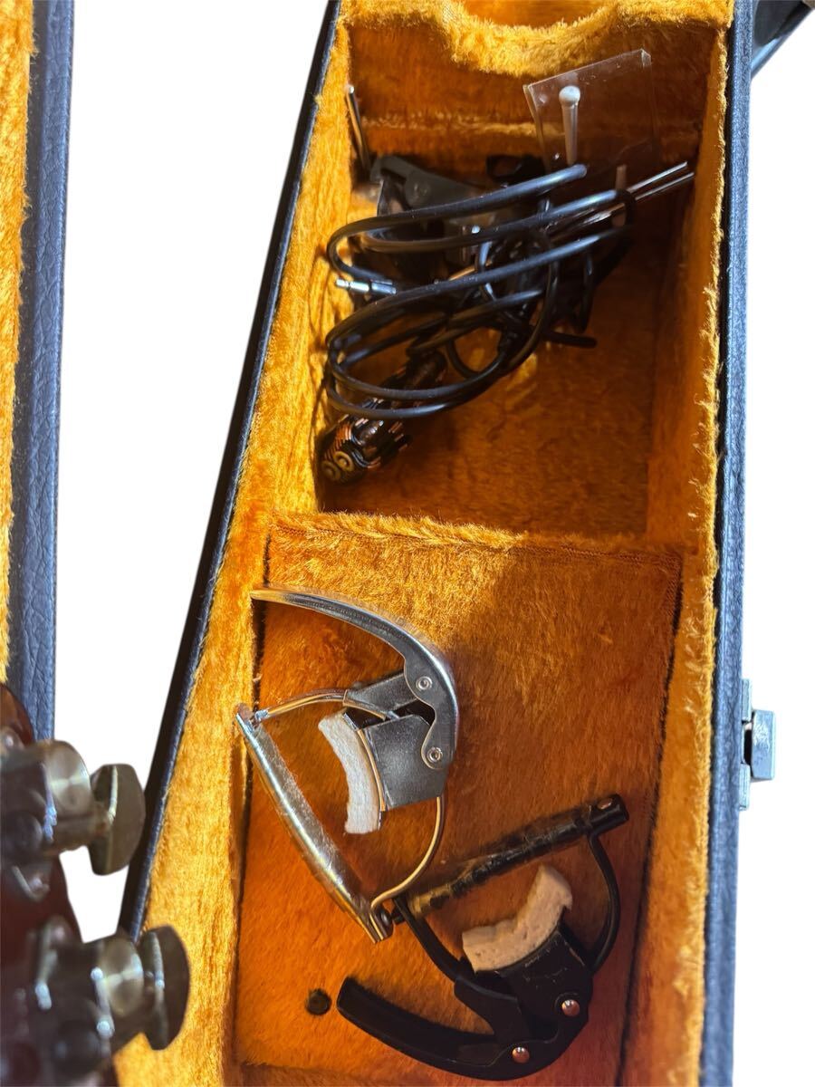50年ほど前のギターですので木部の色灼け、白出す、セルの黄ばみ、バインディングのひびなど