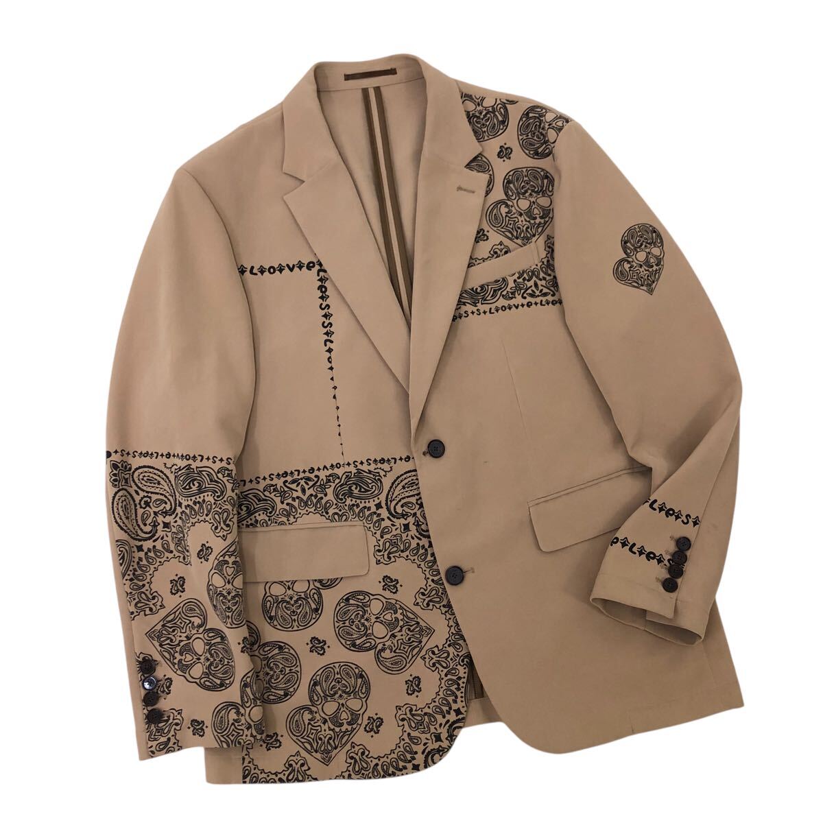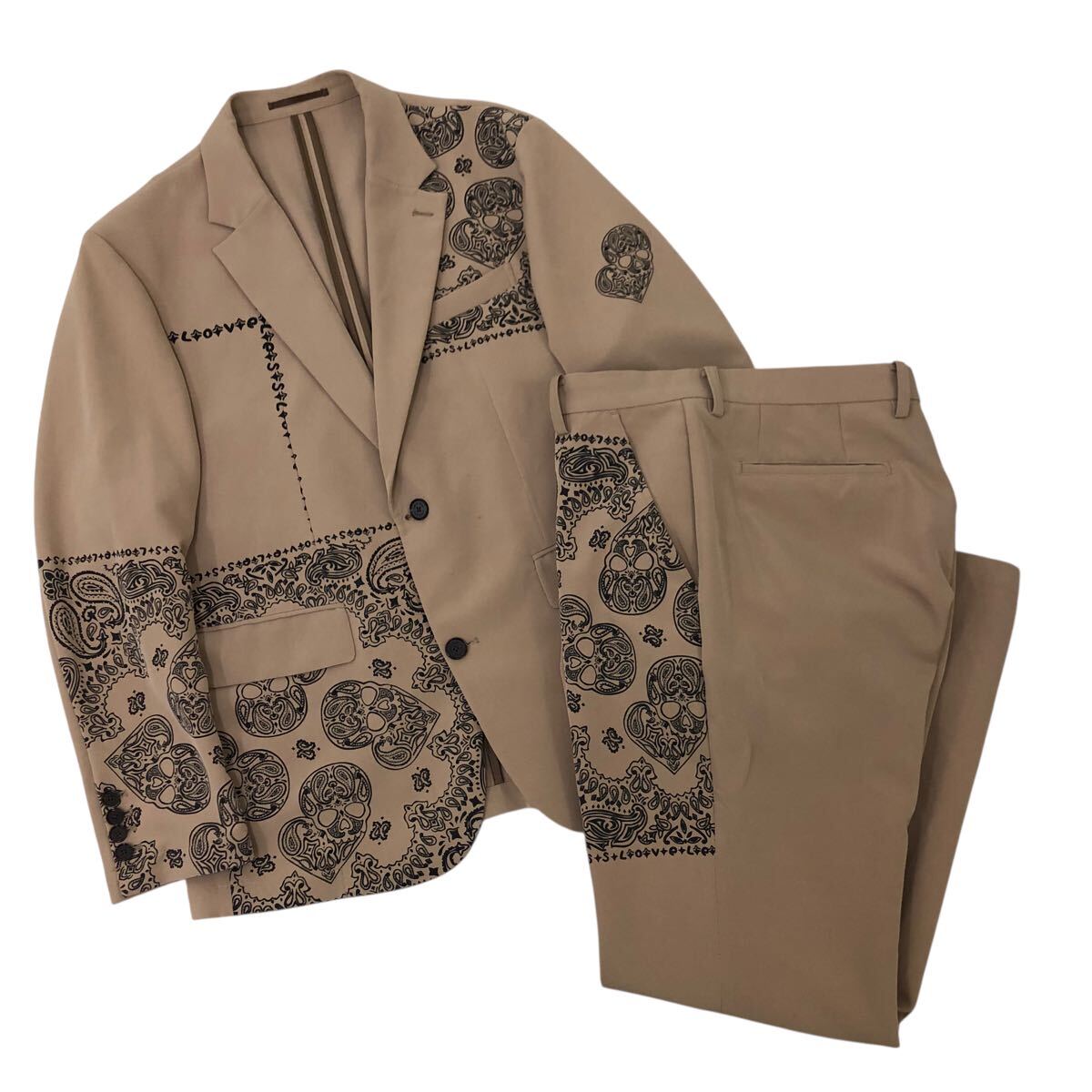 12m688-50 LOVELESS ラブレス バンダナプリント スーツ セットアップ テーラード ジャケット パンツ ラブスカル ベージュ メンズ M