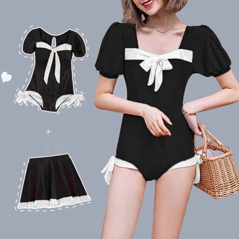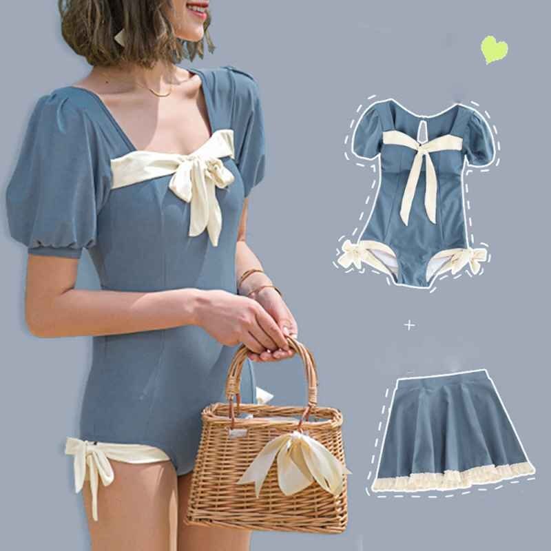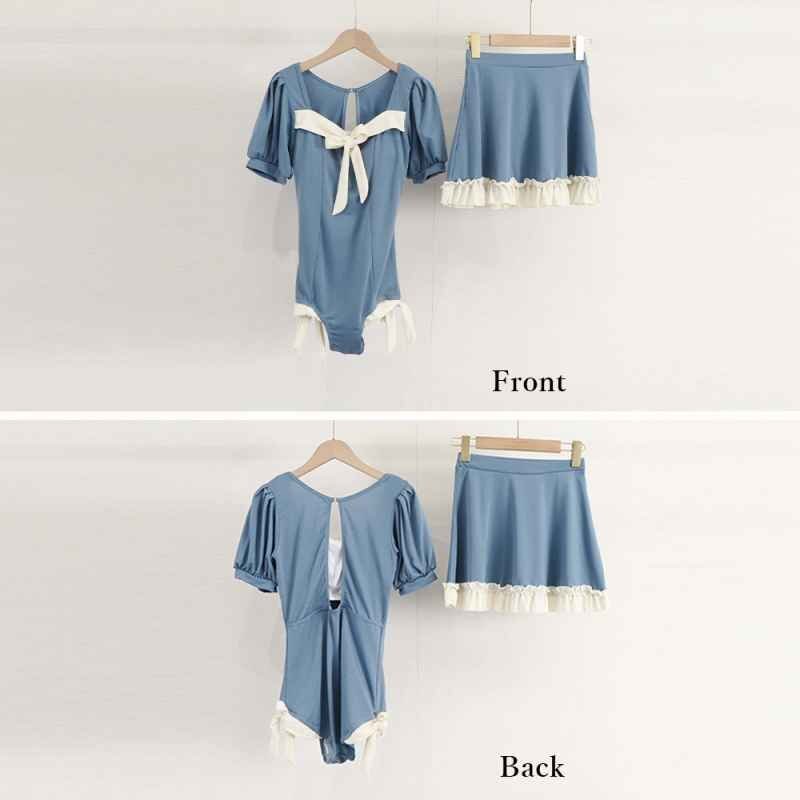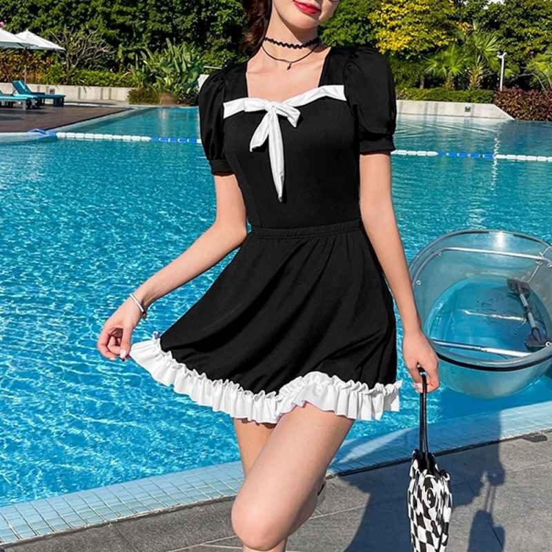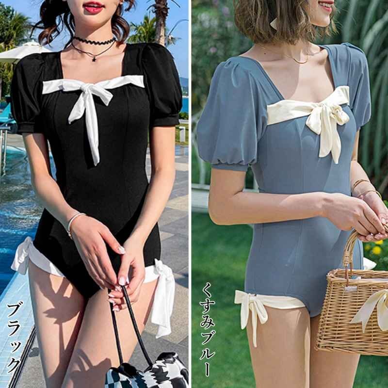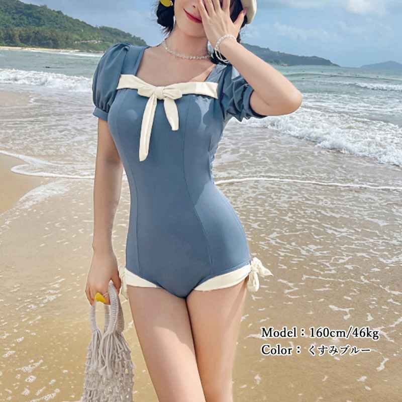 バイカラーのラインとリボンでメリハリを演出し、程よい甘さを醸し出すワンピース水着です。