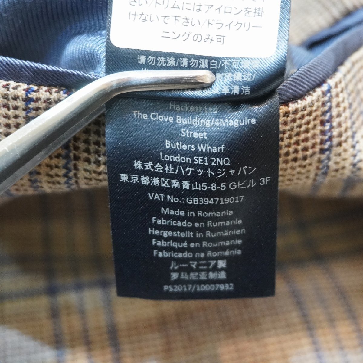 HACKETT LONDON (38R) 175/92A ルーマニア製 チェック柄 ジャパンフィット テーラードジャケット  ハケット ロンドン HM442043 メンズ J11-194