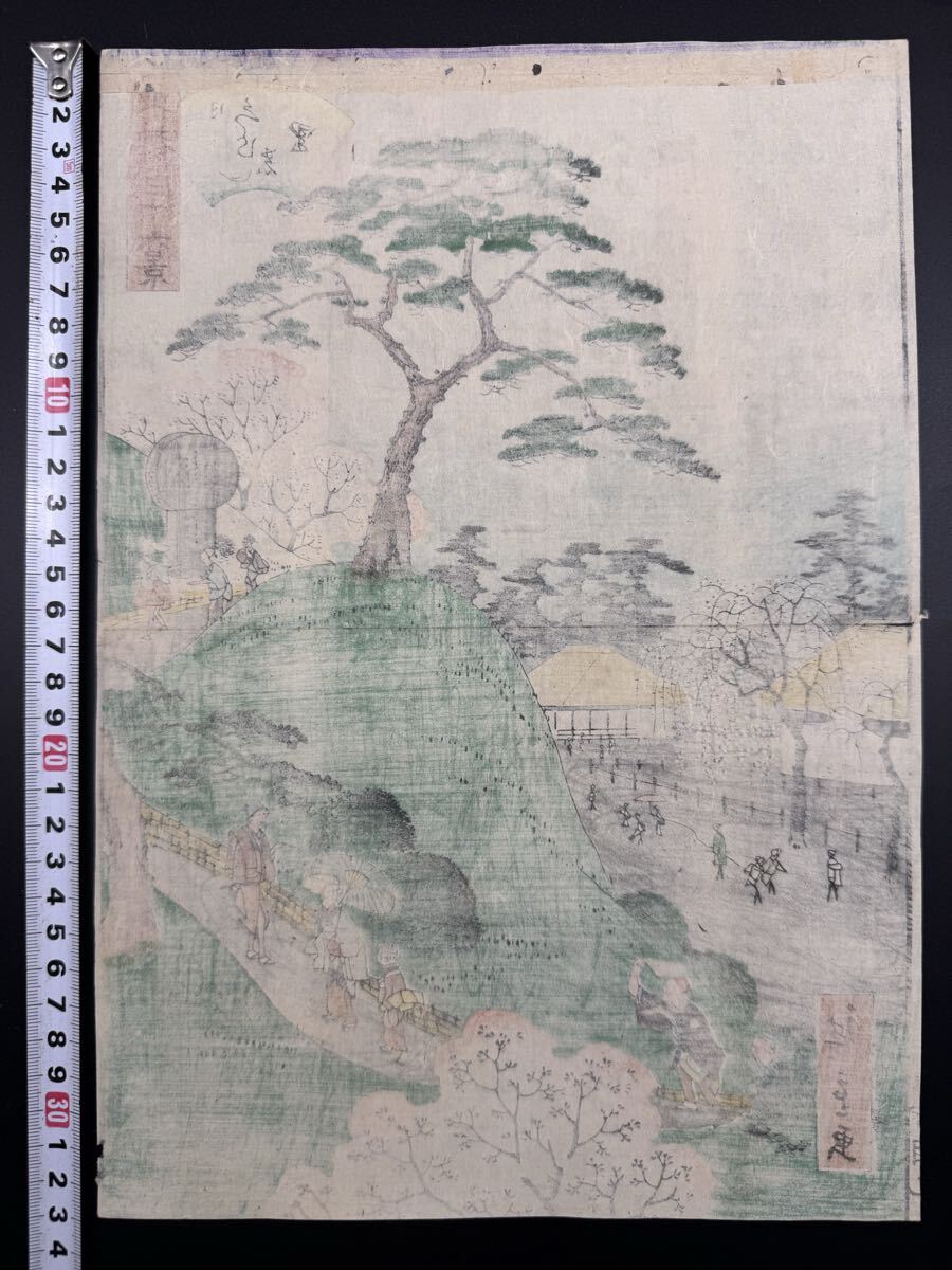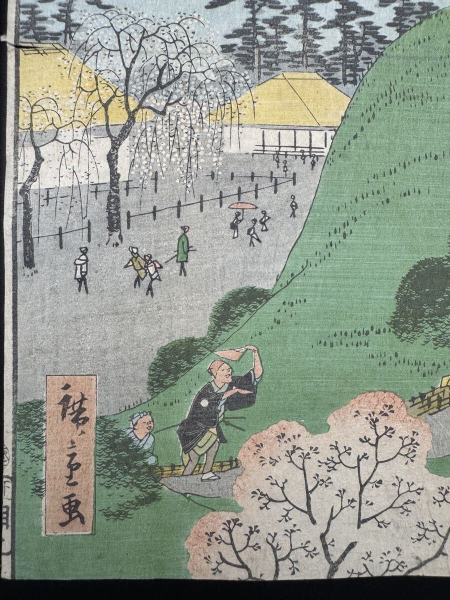 【真作】名作!本物浮世絵木版画 歌川広重「東都三十六景 日くらしの里」江戸期 名所絵 大判 錦絵 保存良い