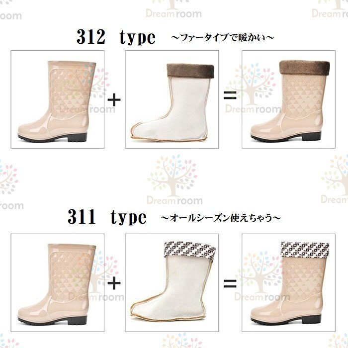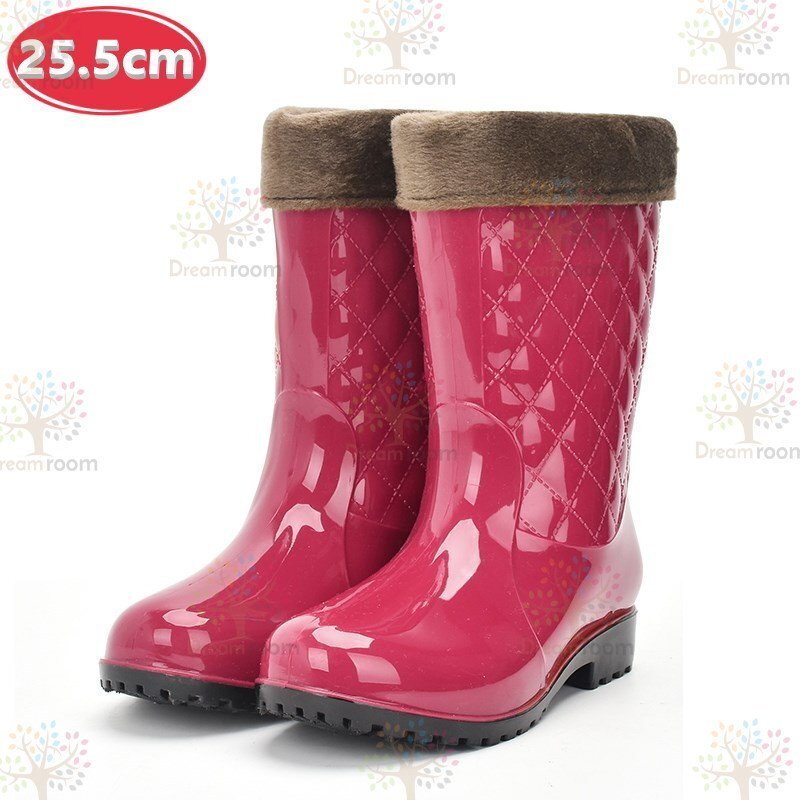 お洒落 キルティング レインブーツ ボアインナー付 【ピンク 25.5cm】 長靴 レディース 女の子 梅雨 K-312