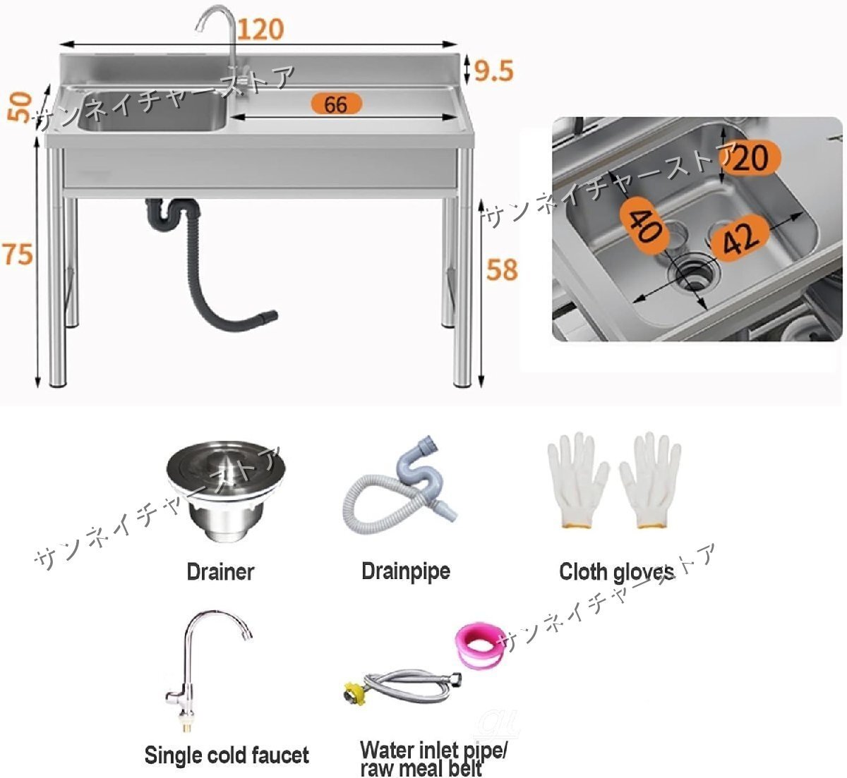 人気推薦★流し台 ガーデンシンク 業務用流し台 自立型ステンレススチールシンク、シングルボウル商業レストランキッチンユーティリティ蛇