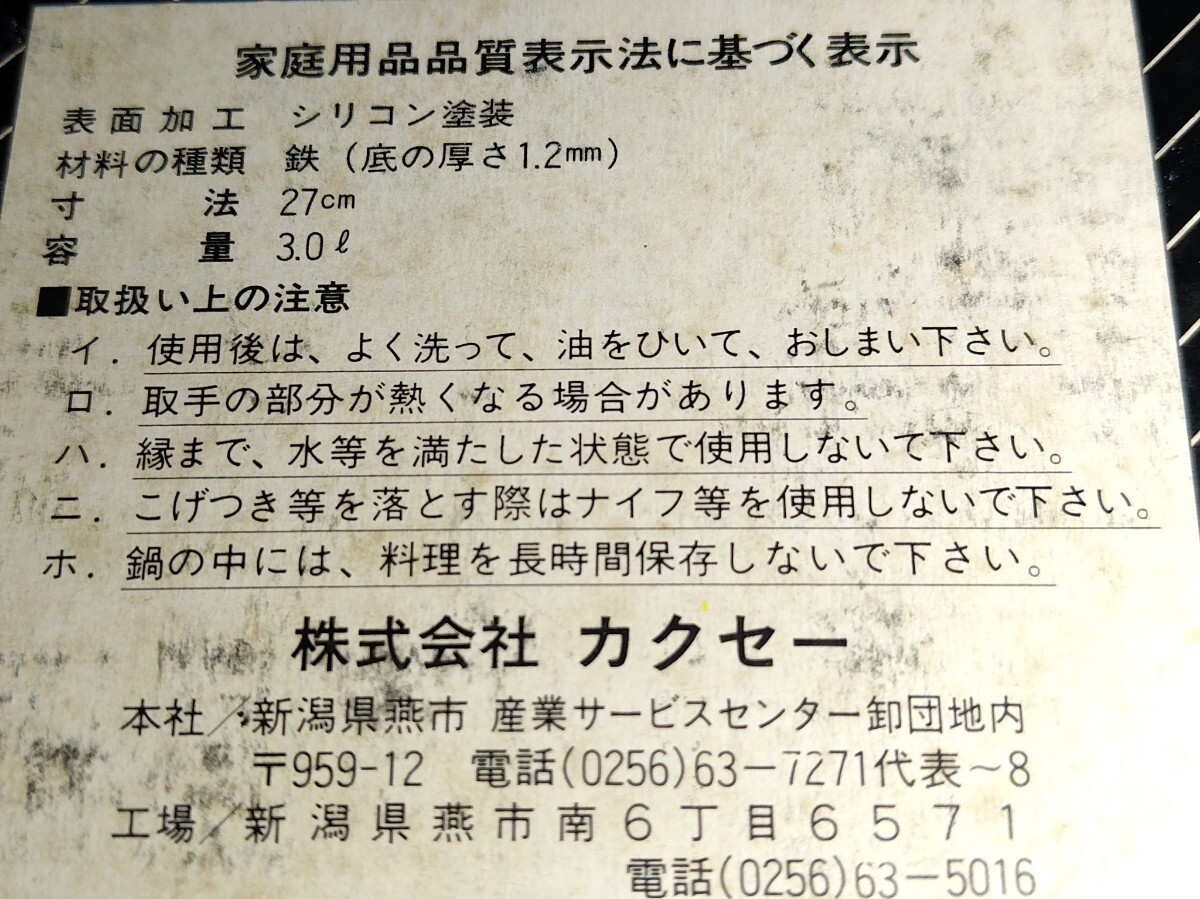 直径/27cmⅹ深さ/8cm 容量/3.0㍑