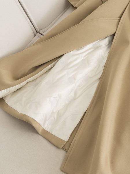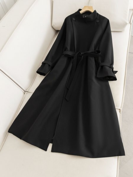 ウエストベルトで女性らしいメリハリのあるシルエットに。ウエストベルトを絞る事ですっきり見えるシルエットにもこだわって仕上げています。膝下までしっかりとカバーするロング丈のコートは、足元まで守りながらエレガントさを兼ね備えています。後ろ裾にはスリットが入り、動きやすさも確保。ボタンを外すと上品な折り襟に、ボタンを留めると立ち襟として着用できる2WAYデザインです。