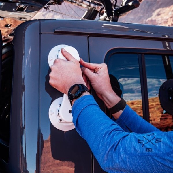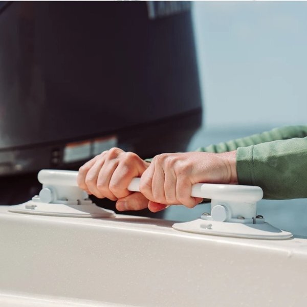 ■品番:17045 ■サイズ:全幅:440mm ■マウントサイズ:6インチ 脱着可能なハンドル 任意の場所にグリップを追加できます マウントを2個で固定するため、引張荷重は約190kg以上 ※御使用の際は、接着面に軽く押しつけ、黄色いラインが見えなくなるまでポンピングして御使用ください ラインが見えてきたら吸着が弱くなってきたサインです。再度、ポンピングして御使用ください※ 注意:※表面がざらいついている場合や水平でない場所、空気が通るような面は真空が保てない為、御使用いただけません | ||||
