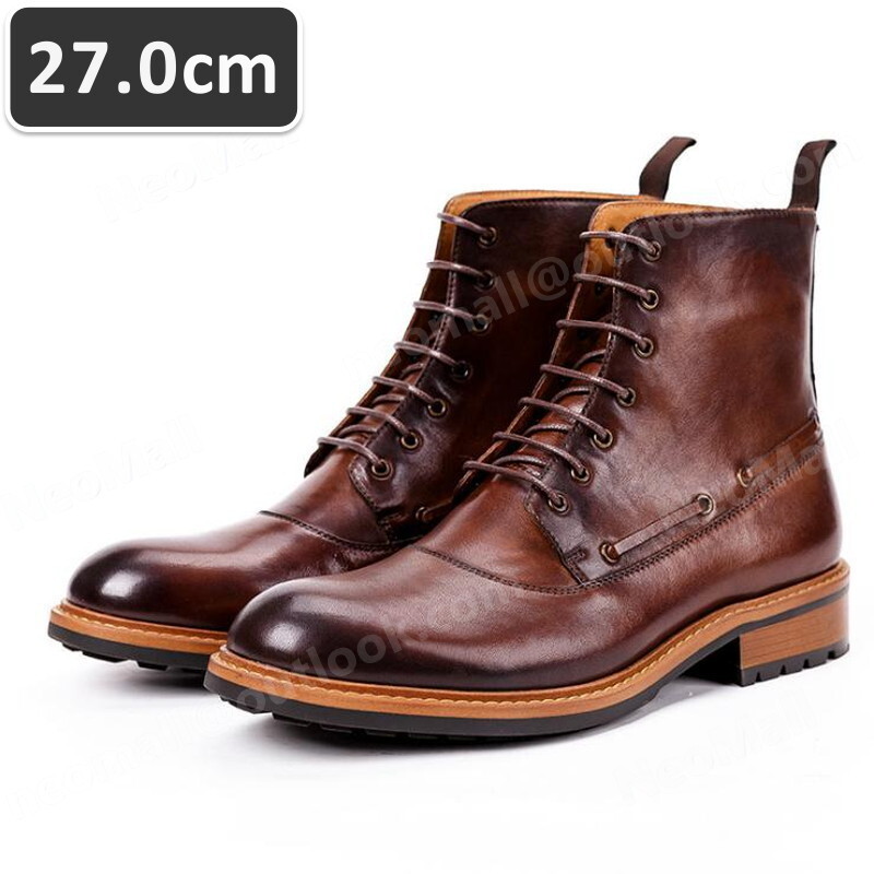 送料込☆ 本革 牛革 メンズ ショートブーツ 珈琲 サイズ 27.0cm 革靴 靴 カジュアル 屈曲性 通勤 軽量 インポート品【n050】