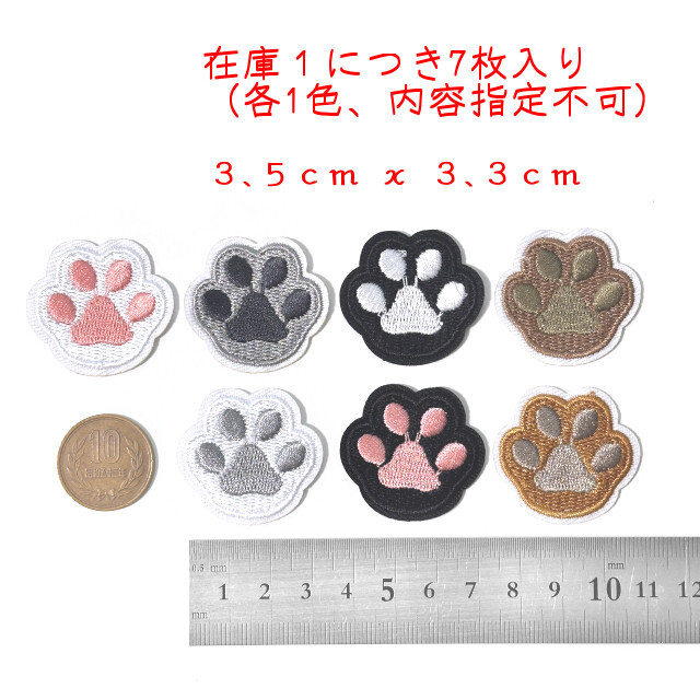 w8350 肉球 猫 犬 ワッペン 刺繍アップリケ 7枚セットです。可愛いアイロンワッペンとなります。入園入学準備、手作りバッグ、布小物のワンポイント、服のリメイク等、ハンドメイド素材として。