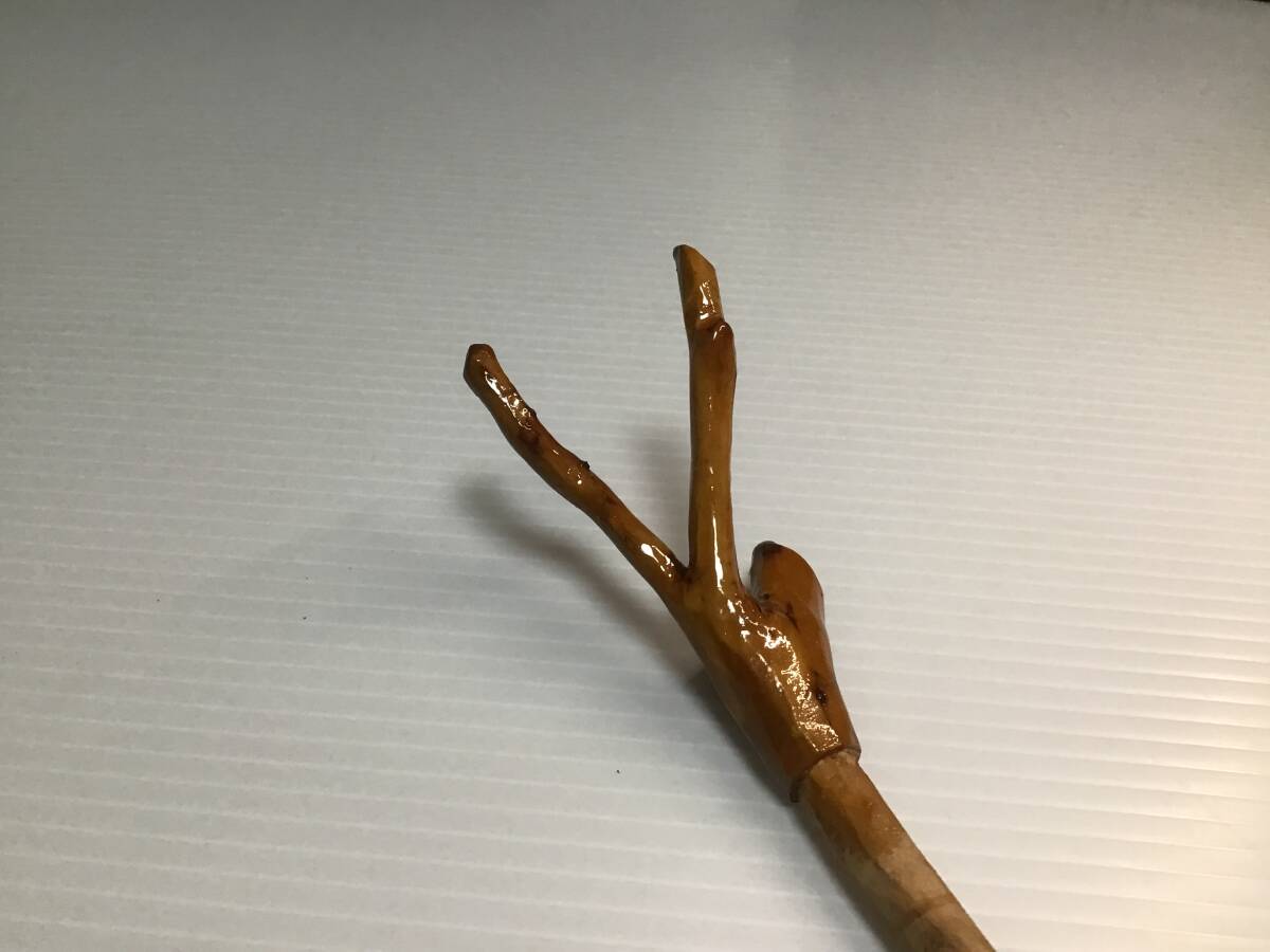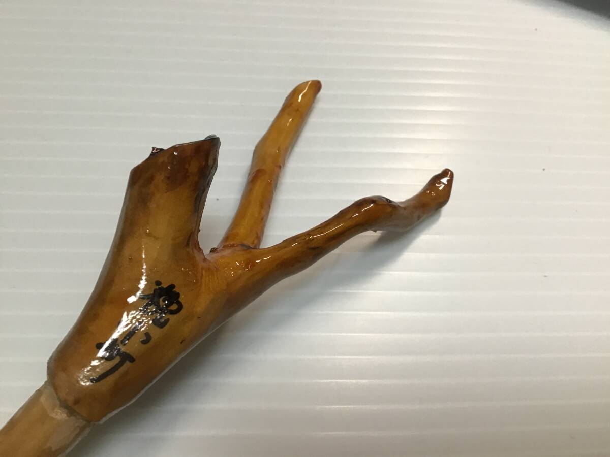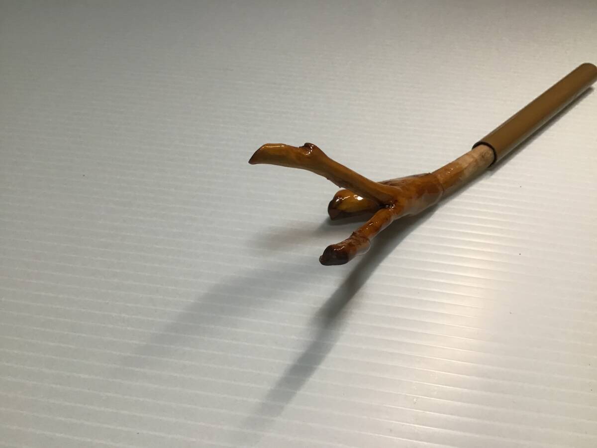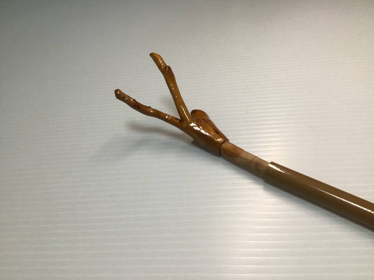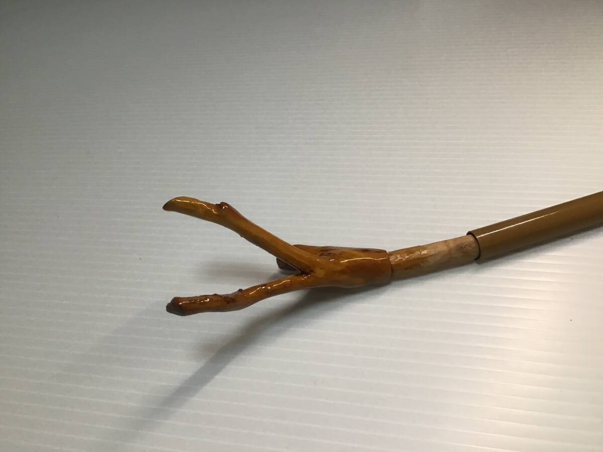 風の強い日に竿をしっかり置き止める40ミリの置き幅と柘植の枝の強さはきっと楽しいヘら鮒釣りのお役に立てると思います。差し込み外径は13ミリ内径は10ミリでございます。